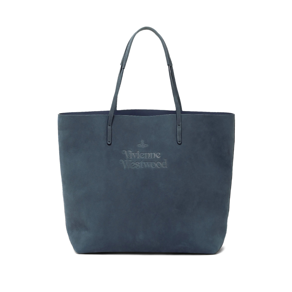 denim blue embossed logo top handle shoulder strap
