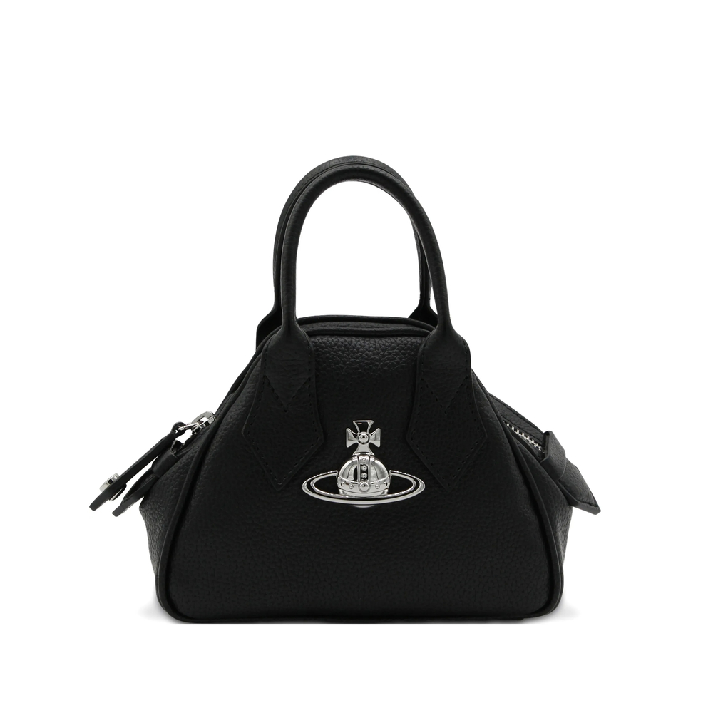 black top handle detachable shoulder strap orb appliqué zip fastening grained texture