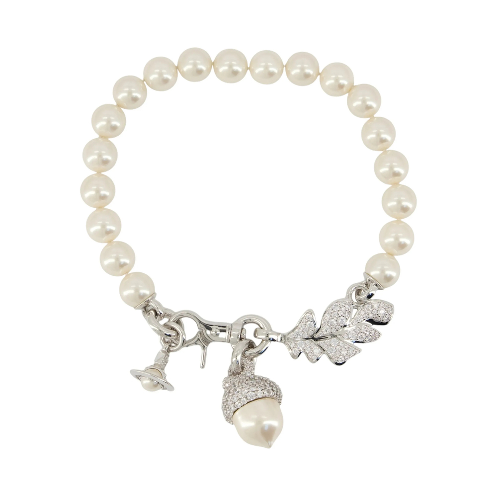 platinum pearl detailing charm lobster clasp fastening leaf detail acorn detail