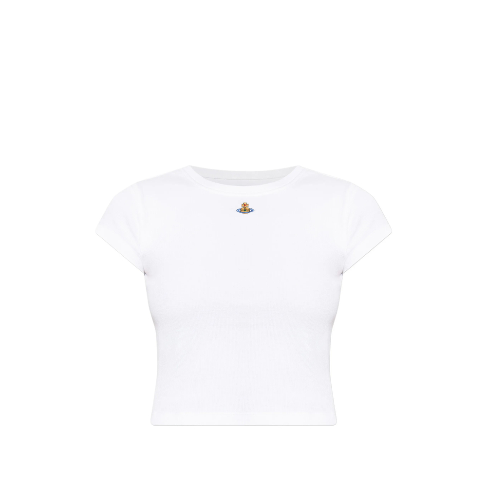 white orb motif round neck short sleeves cropped