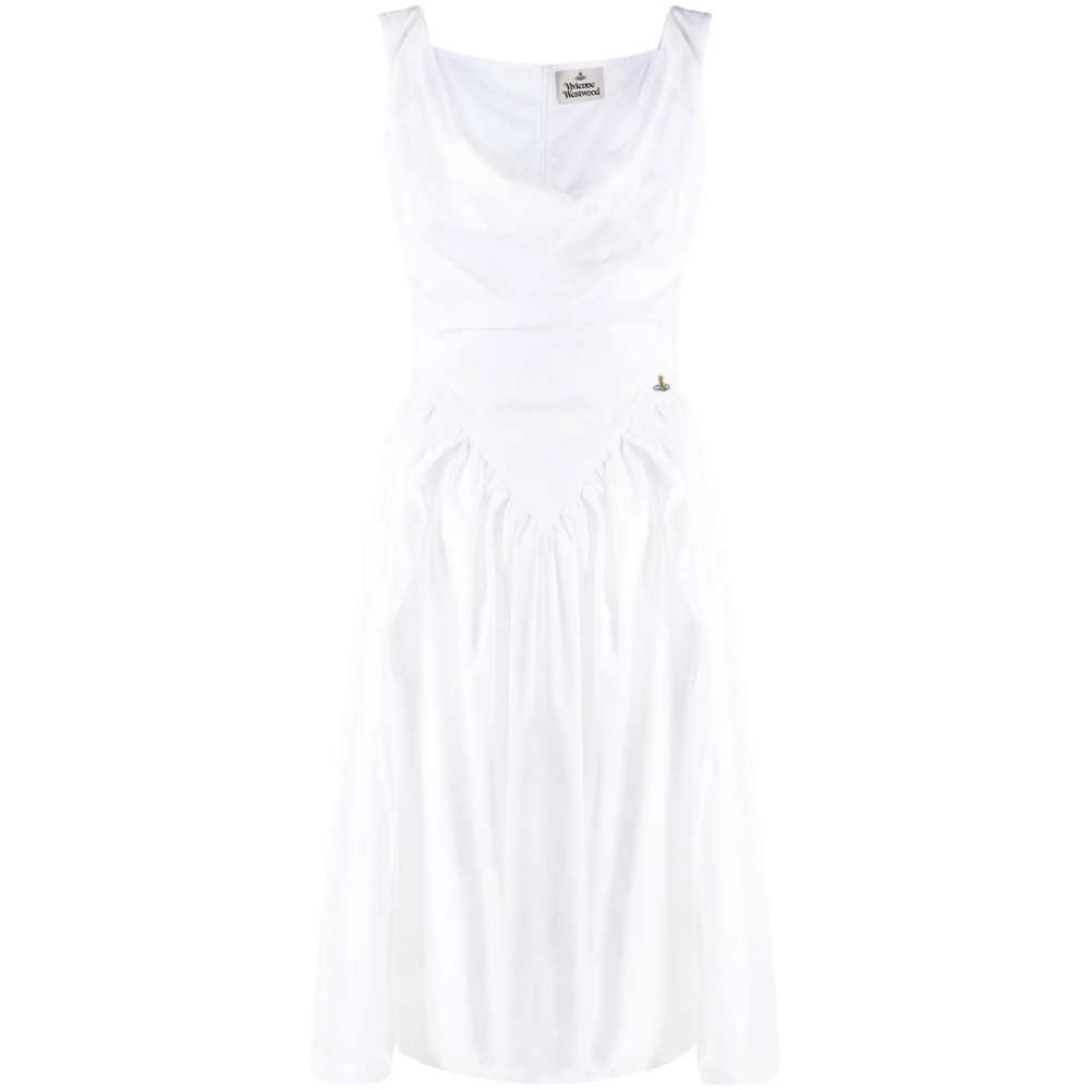 white cotton cowl neck sleeveless pleated skirt concealed rear zip fastening straight hem