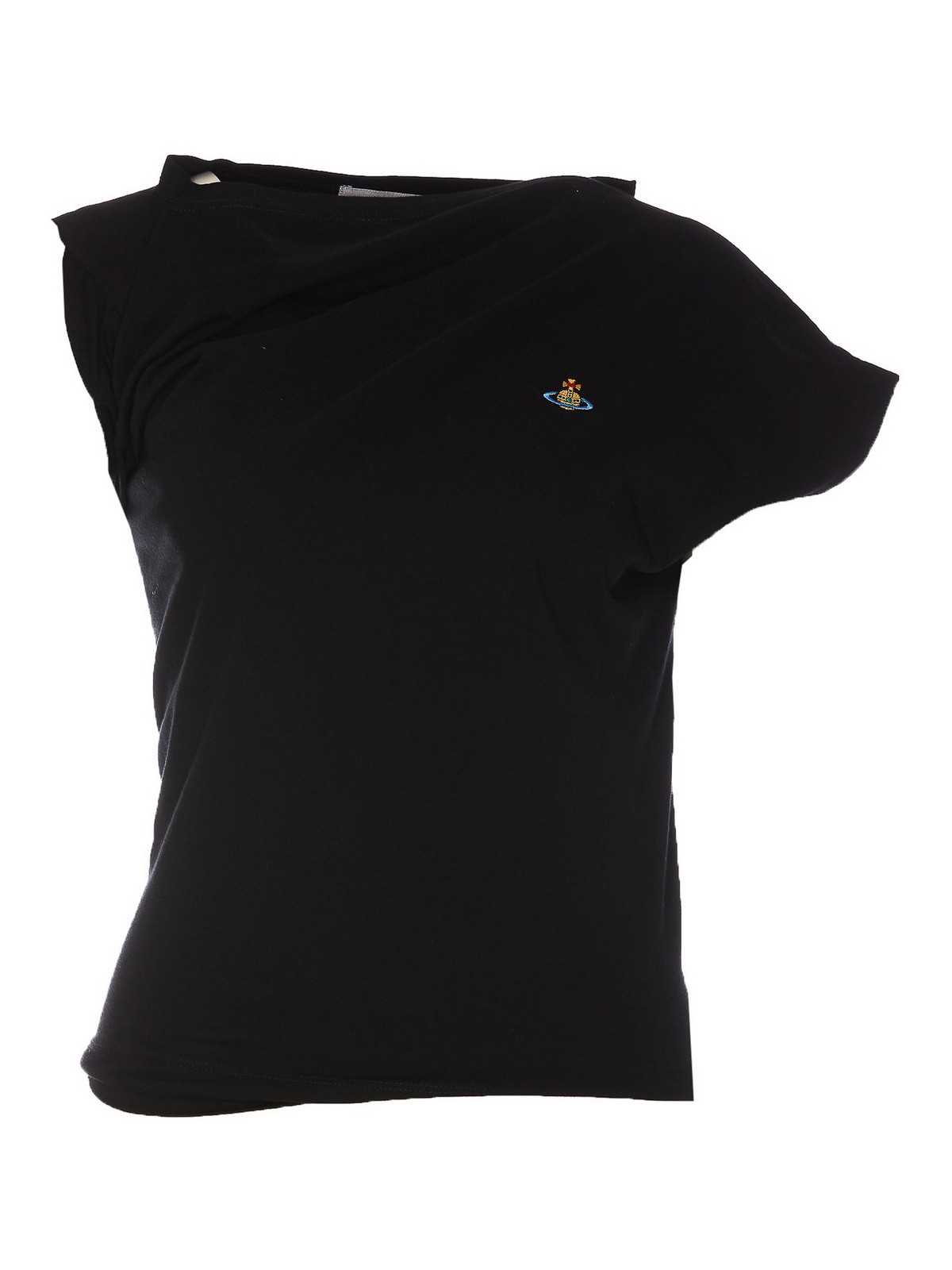 Top Hebo Vivienne Westwood noir, col asymétrique, logo orbe brodé sur le devant, col rond