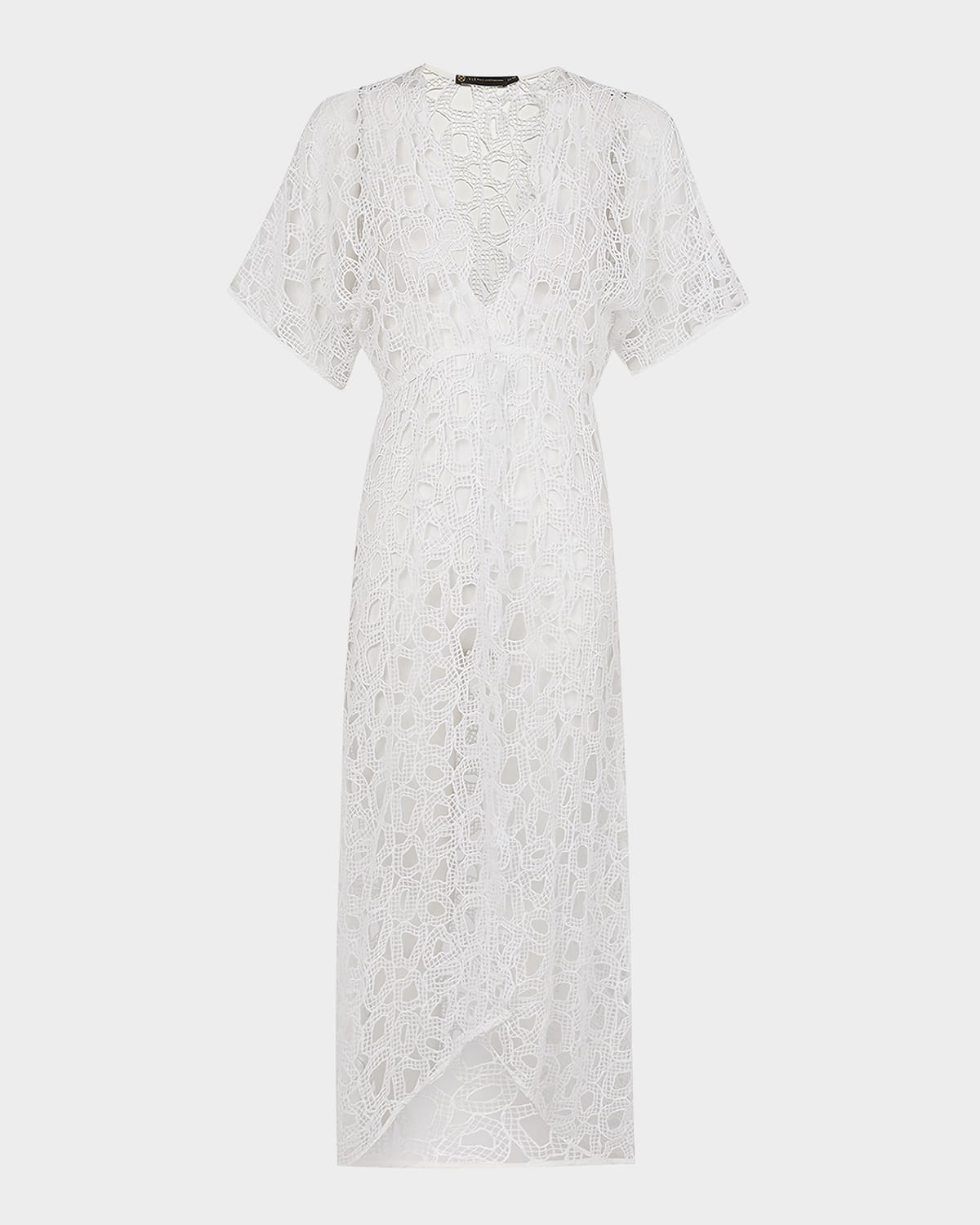 Vix "Arie" coverup in a unique open eyeletembroidered design Plunge neckline Relaxed elbowlength sleeves Full length Rayon/cellulose acetate/elastane Lining: Cotton Hand wash Made in Brazil