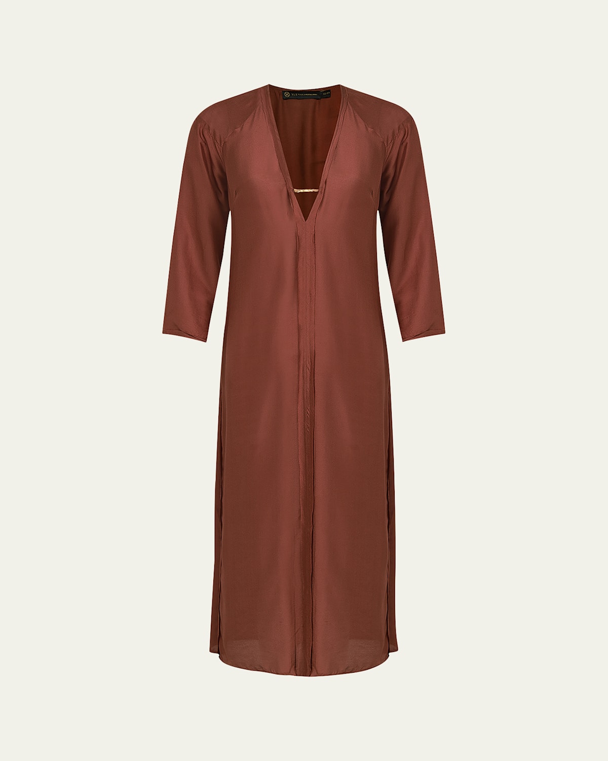 Vix "Julie" solid caftan coverup V neckline Long sleeves Thighhigh side slits Hem falls below the knee Slipover style Rayon/cellulose acetate/silk Hand wash Made in Brazil