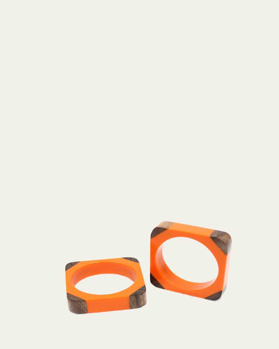 Decorative napkin ring features bright colors and geometric shape Made of resin and wood Approx. 2"Sq. x 0.3"T Item Weight (Lbs.): 0.2 Wipe clean with damp cloth Imported