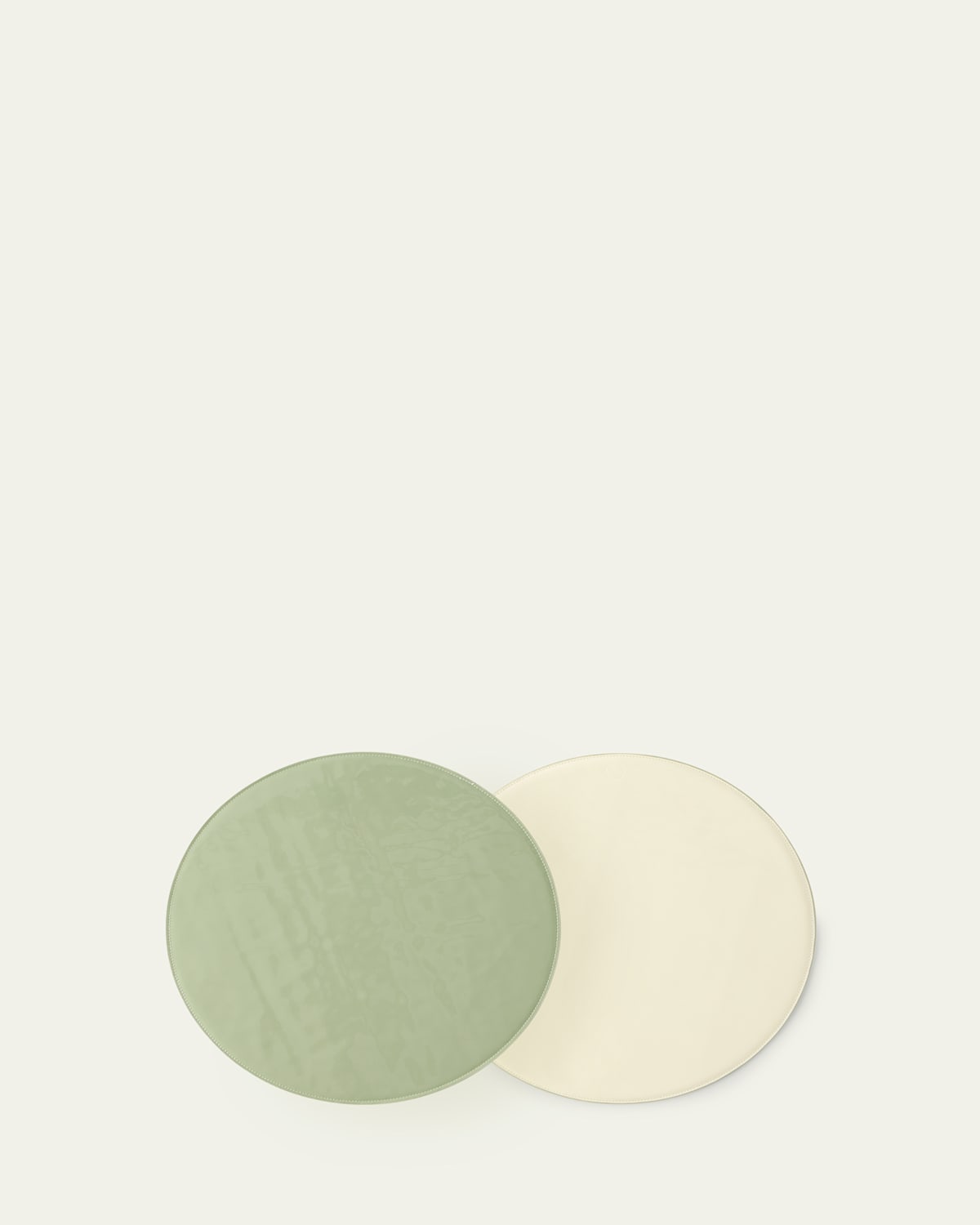 Color sets the tone and our faux leather reversible placemats let you transform the look of your table with a quick flip. One side features a bold confident hue that gives off a fresh, contemporary look. The other side offers an understated palette that sets a more sophisticated mood. Perfect for everyday dining or a lavish dinner party, these placemats are easy to care for; simply wipe down before storing. Made of faux leather (polyurethane) Approx. 15"Dia. Sold individually Wipe clean with a damp cloth Imported