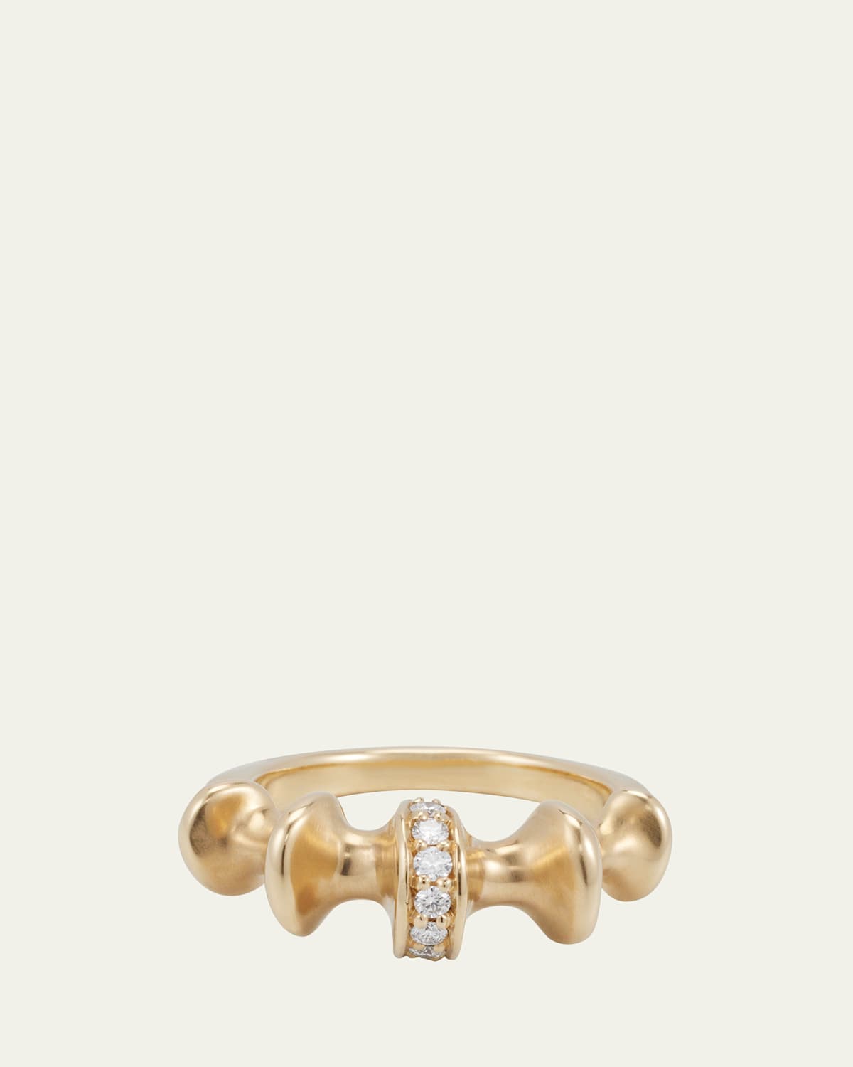Vram ring from the Chrona Collection Approx. ring size 6.5 18karat yellow gold Roundcut diamonds Total carat weight; Diamond: 0.15 Made in the USA