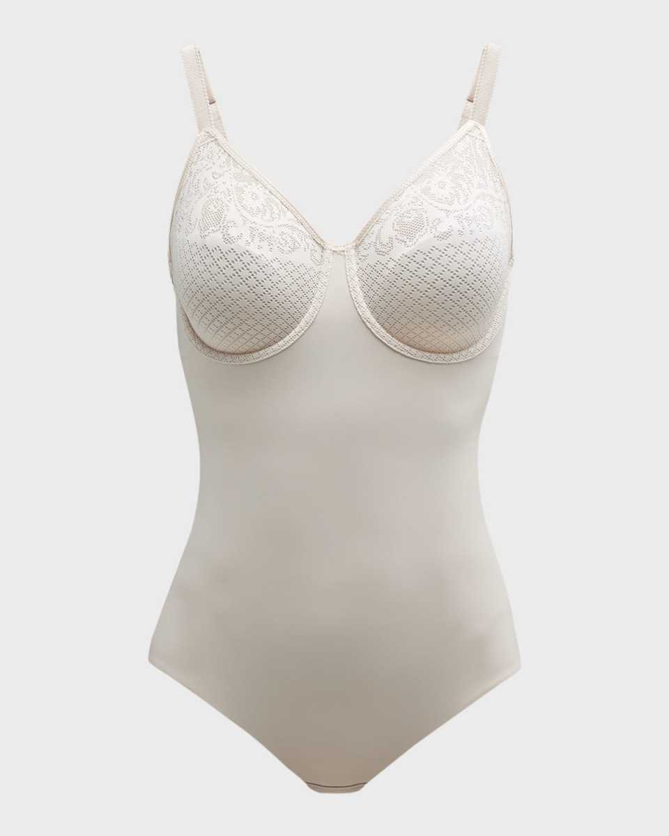 Wacoal "Visual Effects" microfiber bodysuit. Meshlace underwire cups for support; fullcoverage. Thick adjustable shoulder straps. Fitted bodice smoothes tummy and waist. Full seat coverage. Hookeye gusset closure. Cottonlined gusset. Nylon/spandex. Imported.