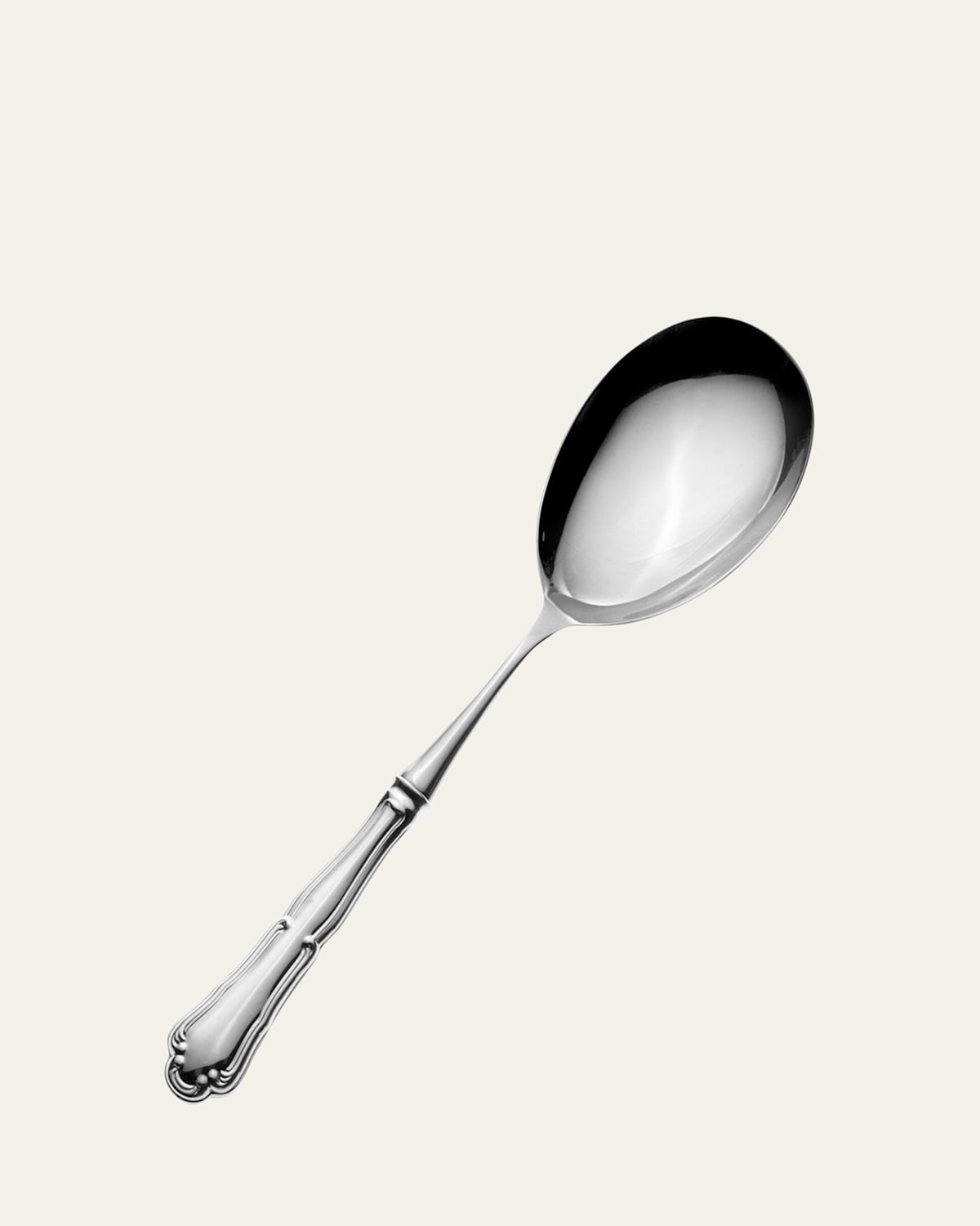 Salad serving spoon made of sterling silver. Stainless steel blade. Hollow handle. Made in the USA.