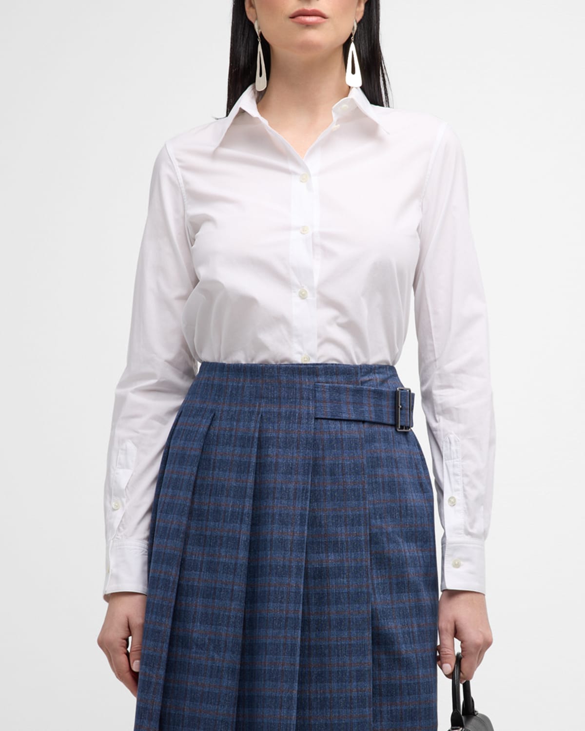 WEAR4 upcycled classic cotton shirt Point collar Long sleeves; button cuffs Fitted silhouette Hem falls to the hip Buttonfront Cotton Lining: Polyester Machine wash Made in Italy