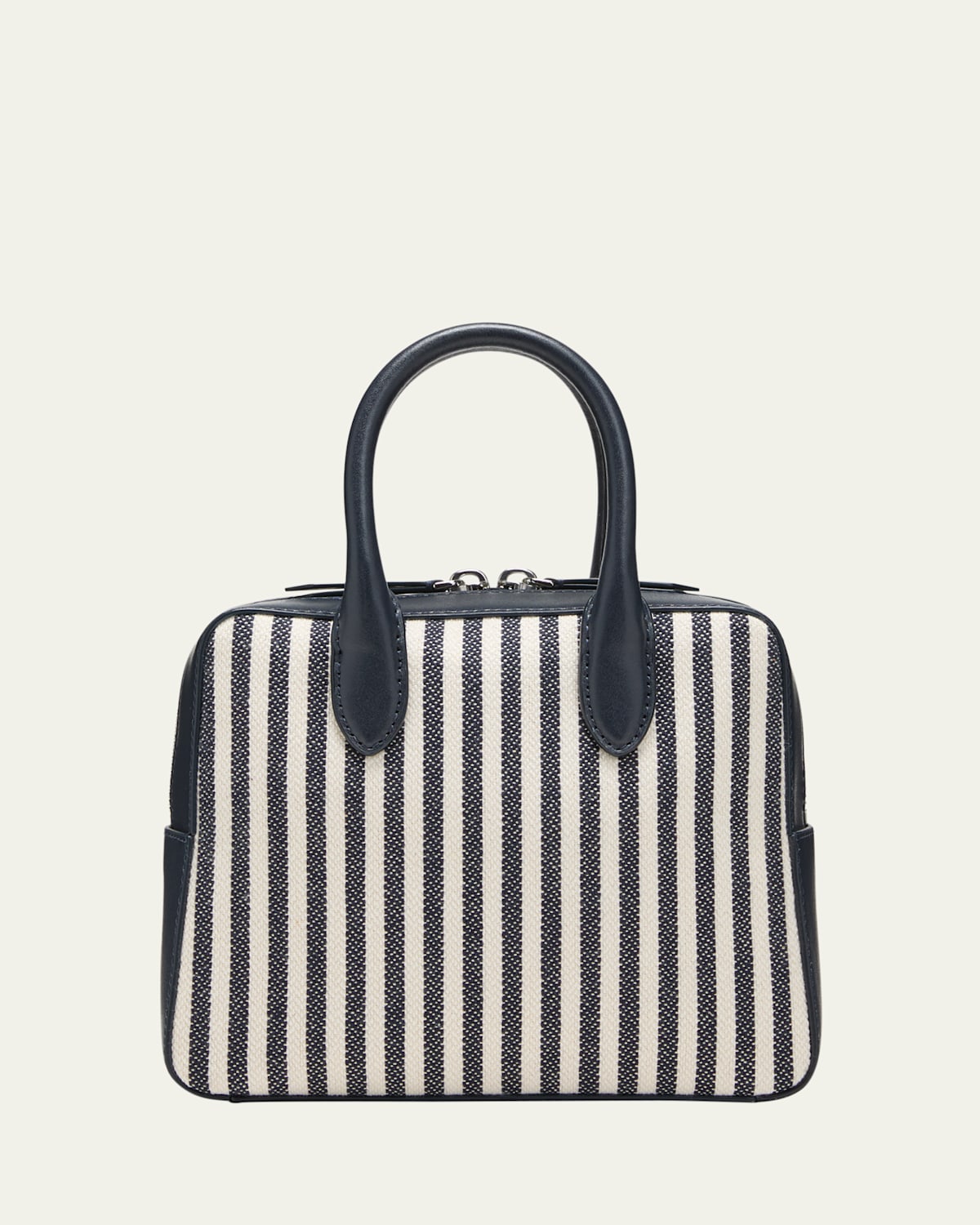 WEAR4 "The Flight 20" top handle bag in striped canvas cotton and calf leather Rolled top handles Detachable, adjustable crossbody strap, 52" drop Twoway zip top closure Interior, one zip pocket and two slip pockets Approx. 6.5"H x 8"W x 3.3"D Professional cleaning recommended Imported