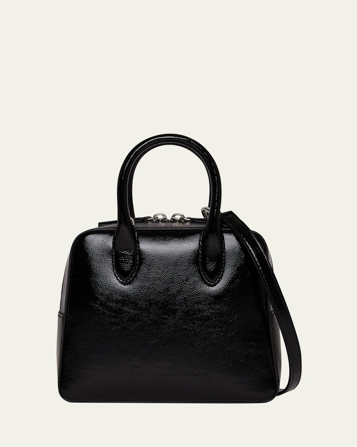 WEAR4 "The Flight" top handle bag in patent calf leather Rolled top handles Detachable, adjustable crossbody strap Can be worn as a top handle or crossbody bag Twoway zip top closure Interior, one zip pocket, two slip pockets Approx. 6.8"H x 8"W x 3"D Imported