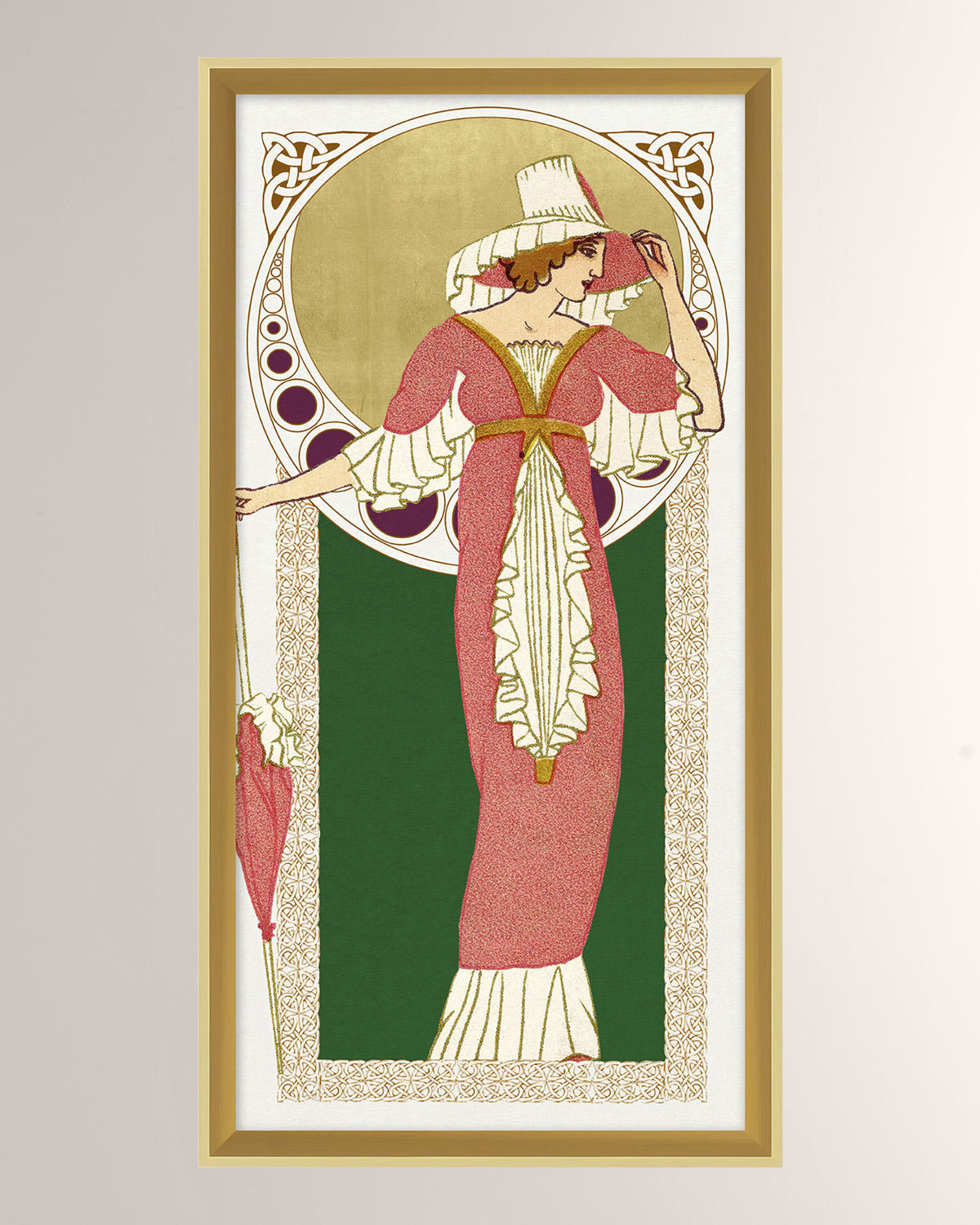 Handcrafted of wood moulding, foamcore, matte giclee paper, gold leaf, and glass. 13.3"W x 1.6"D x 25.3"T. Made in the USA of imported materials. Boxed weight, approximately 10 lbs.