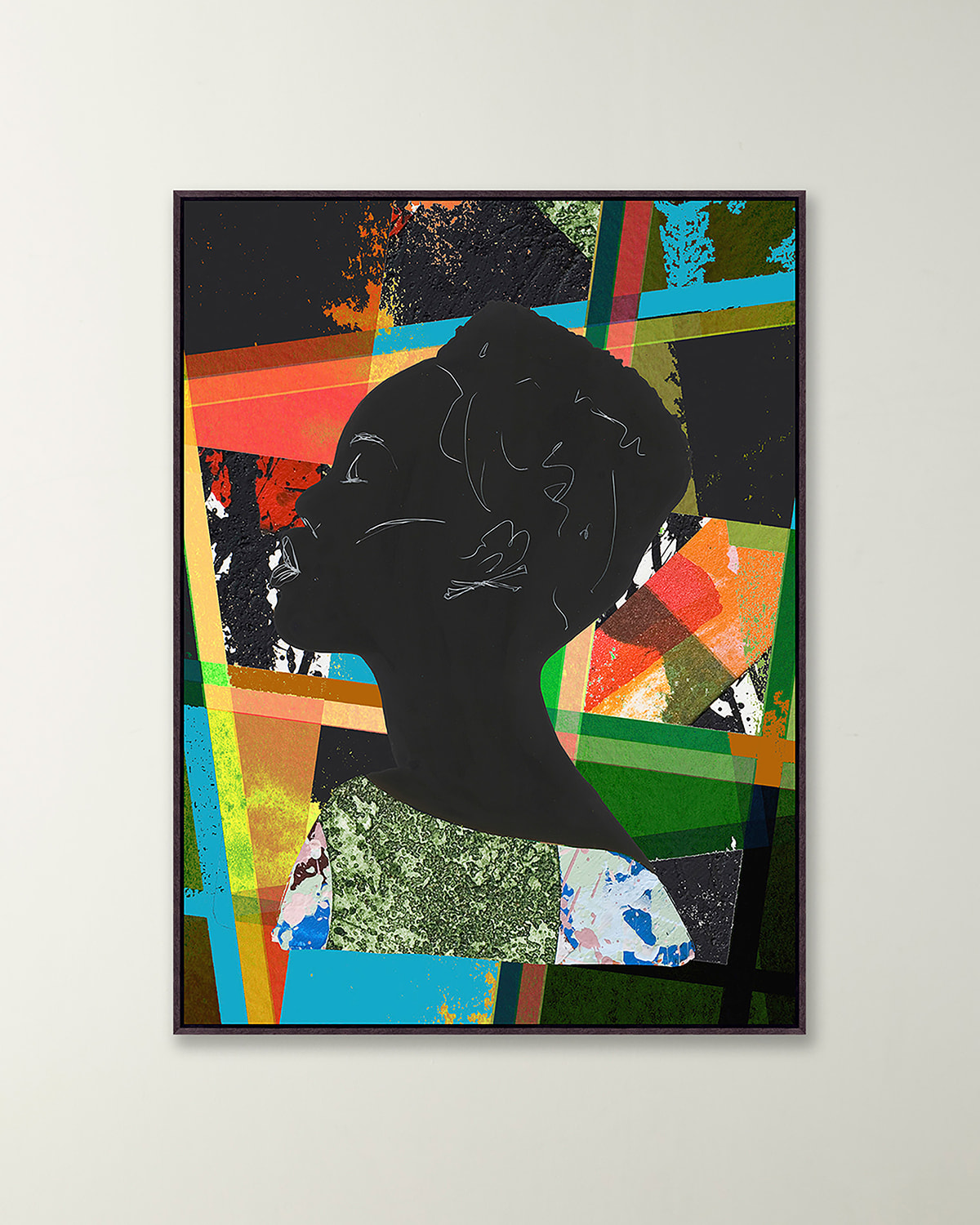 The artist uses traditional fabric patterns as a background for profile silhouettes to add depth to the image The artwork is enhanced by trained artisans using paint to highlight areas of the image Made of wood and canvas Approx. 2.25"L x 30"W x 40"T Wipe clean Made in USA Weight, 12.5lbs Boxed weight, approximately 17.5lbs