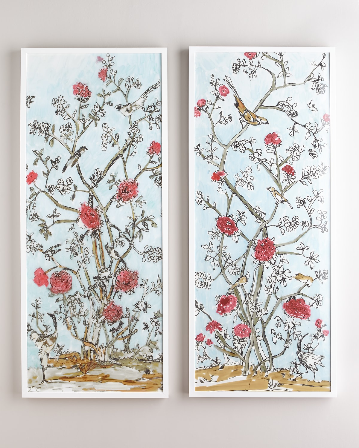Handcrafted set of two giclée reproductions. Matte giclée paper/foamcore/plexi glass/wood moulding. Each, 25.5"W x 2.1"D x 61.5"T. Drings on back of art; wall hangers not included. Made in the USA. Boxed weight, approximately 50 lbs.