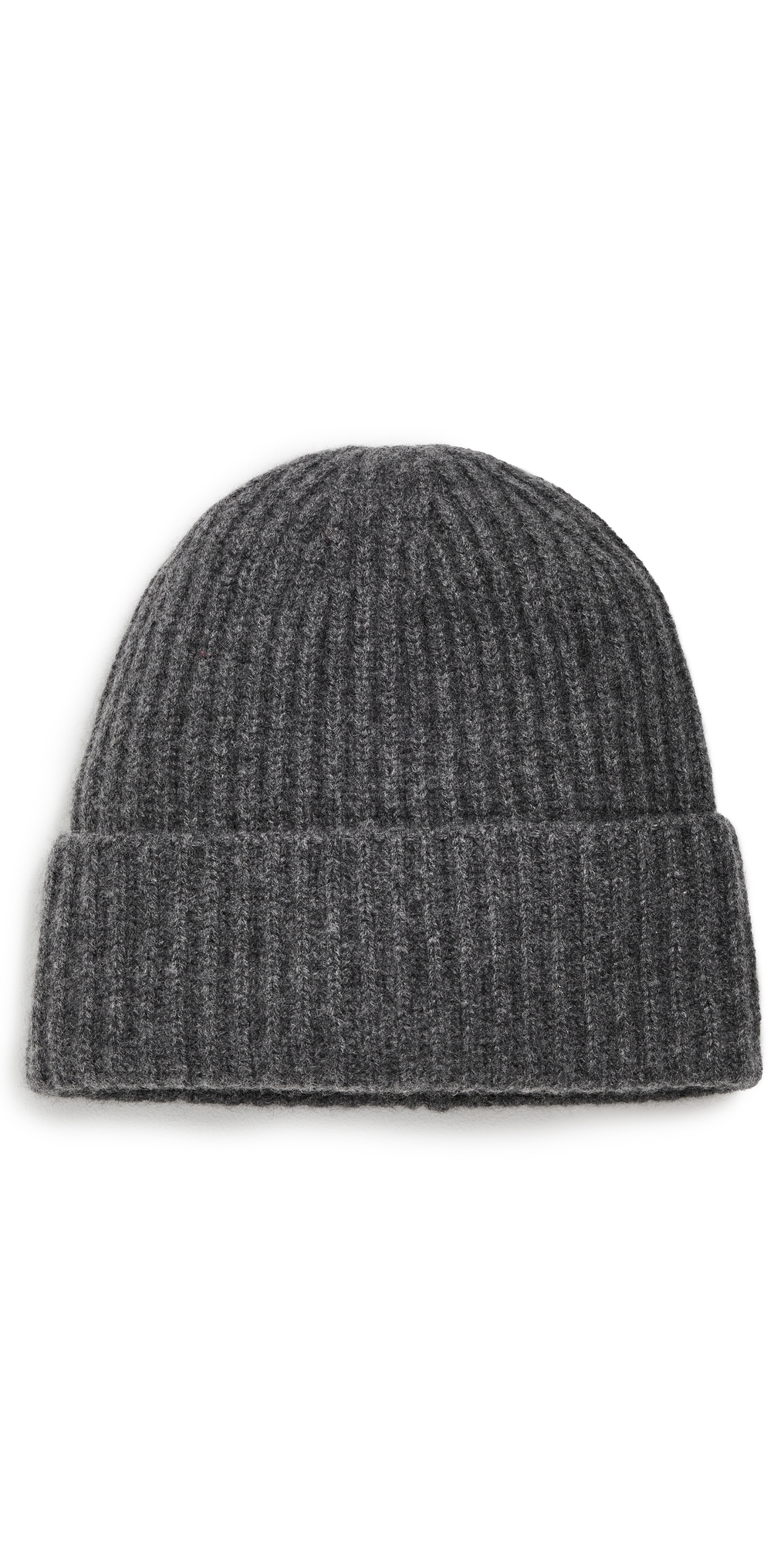 Cashmere Luxe Ribbed Beanie Grey Heather