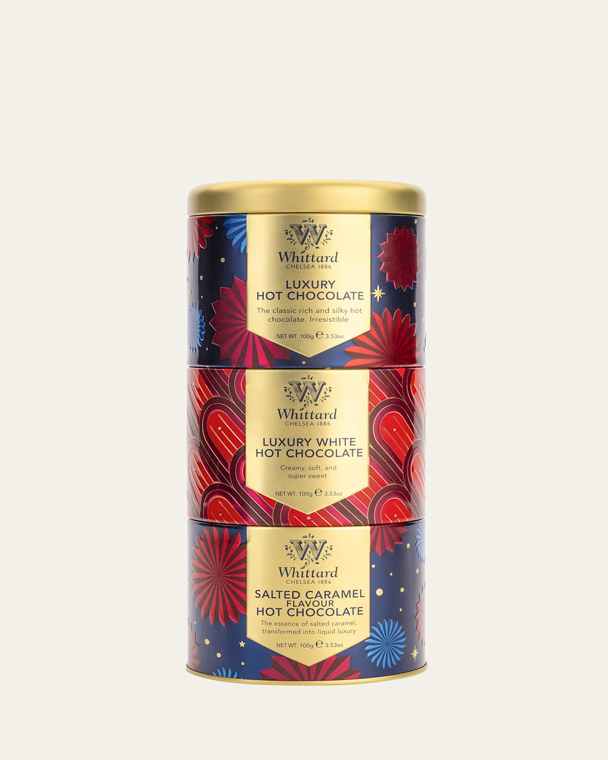 This trio of hot chocolates makes a great gift for others, or for keeping in the cupboard as a warm treat to tackle the cold winter months. Flavors: Luxury Hot Chocolate, Luxury White Hot Chocolate, and Salted Caramel Hot Chocolate Shelf life: 2 years Store in a cool, dark place 3 x 3.53 oz./ 100 g Made in Germany