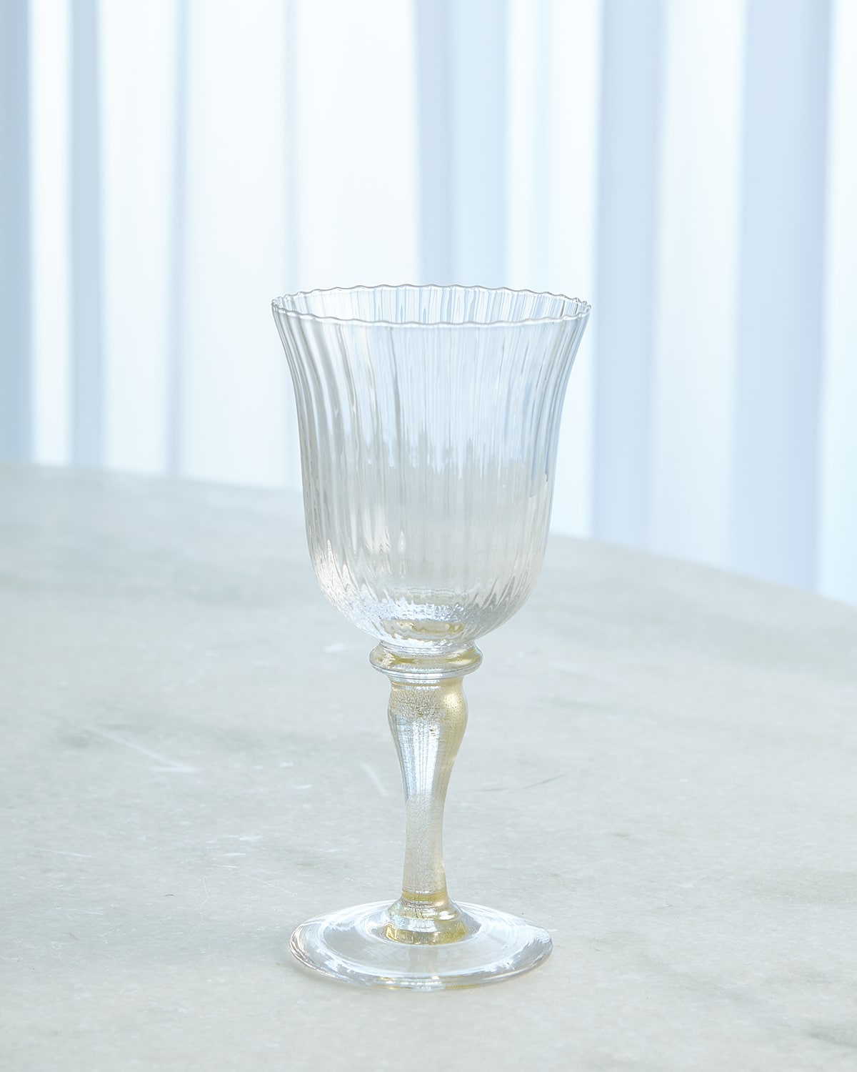 Our Short Wine Glass is made from Italian crystal and features a gold stem, making it perfect for entertaining. Approx. 3"Dia. x 6.25"T. Hand wash only; not dishwasher safe. Made in Italy.