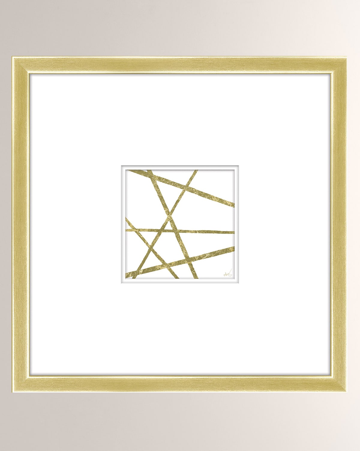 Gold foil print on paper and under glass. Approx. 21.25"Sq. Hangs on sawtooth hanger. Dust with dry cloth, clean glass with glass cleaner. Made in the USA. Boxed weight, approximately 6.7 lbs.