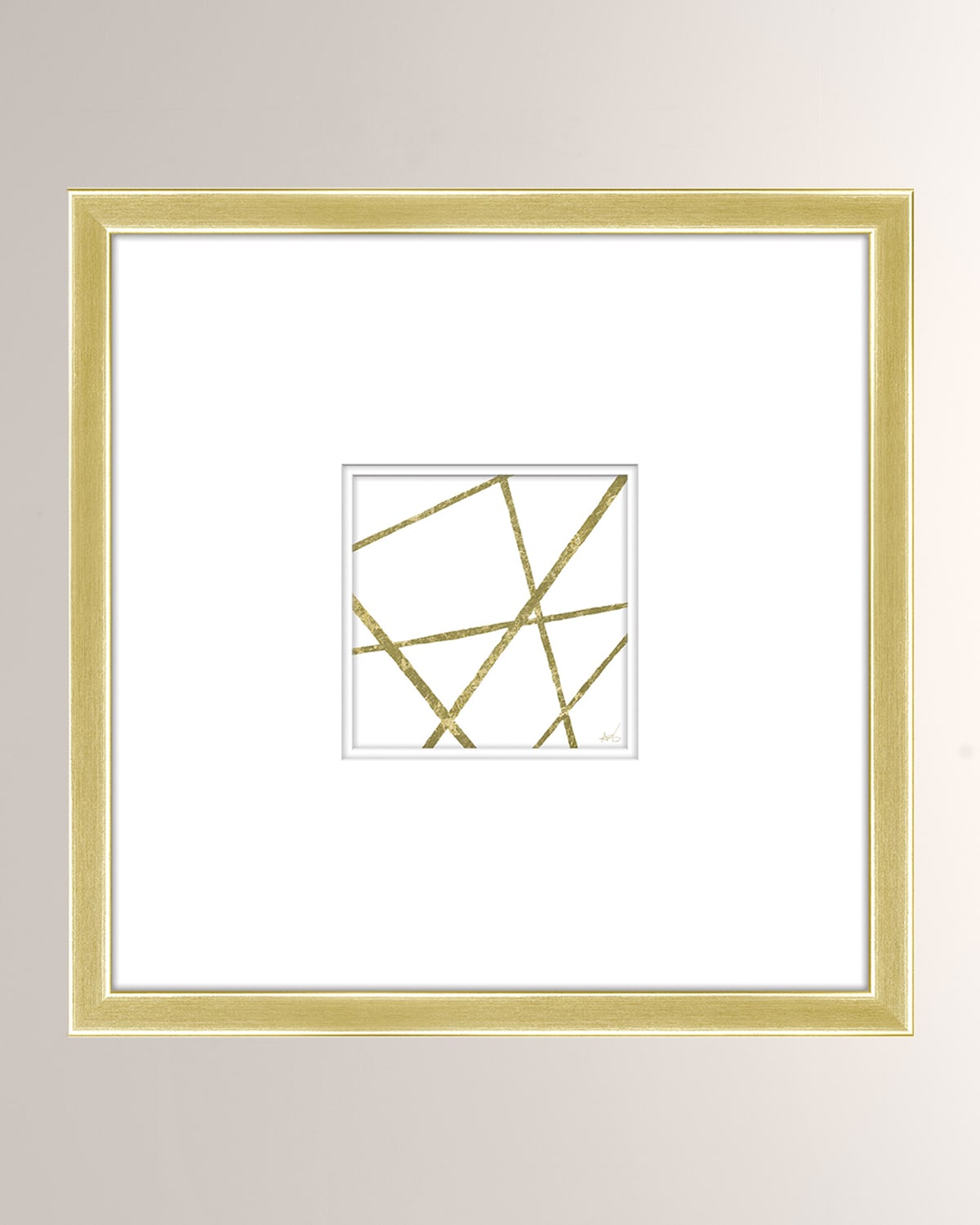 Gold foil print on paper and under glass. Approx. 21.25"Sq. Hangs on sawtooth hanger. Dust with dry cloth, clean glass with glass cleaner. Made in the USA. Boxed weight, approximately 6.7 lbs.