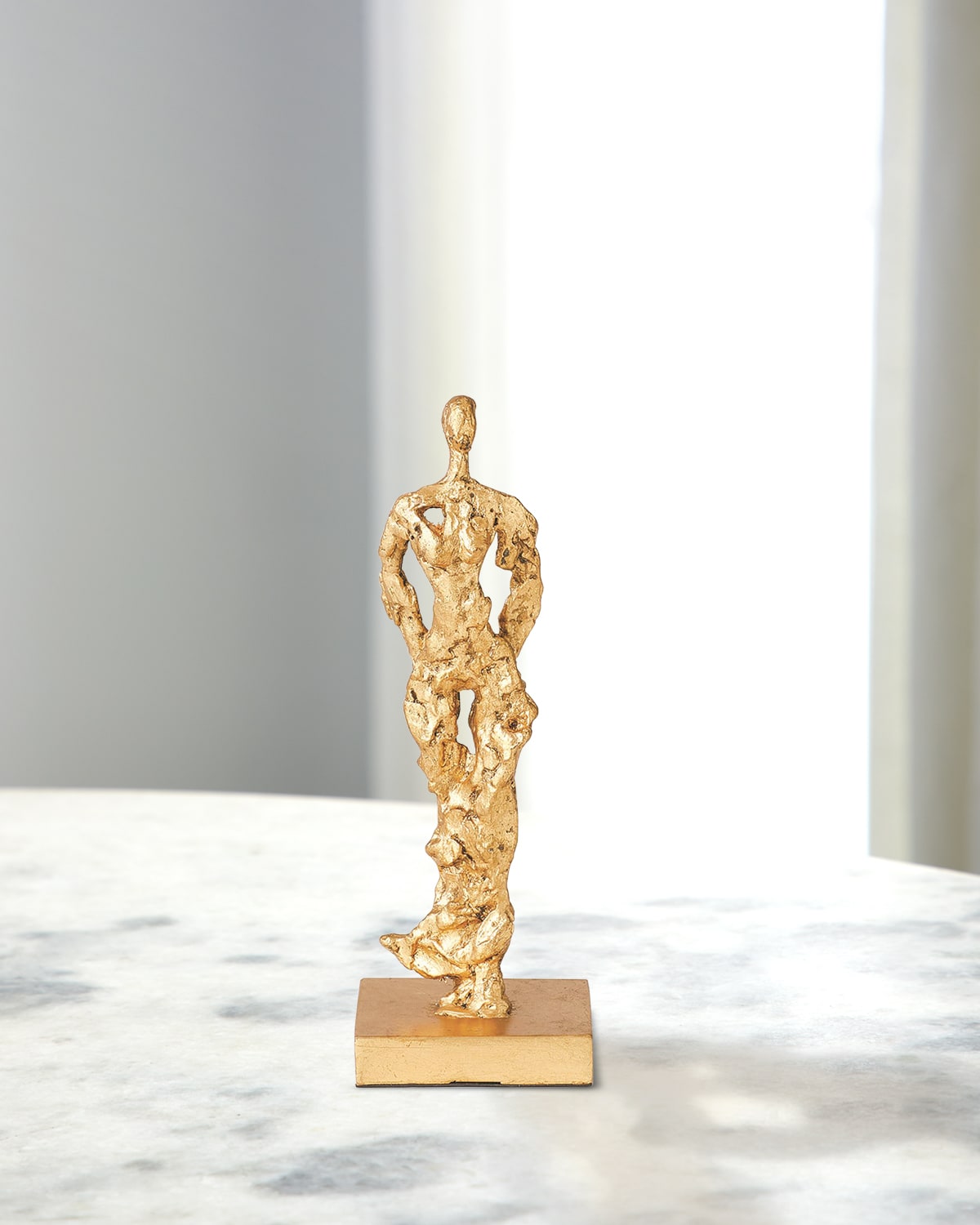 These abstract sculptures form the shape of the human body. Made from cast iron and finished in leafing, use as a pair or just one on its own. Overall: 4"Sq. x 11.5"T. Dust with a dry cloth. Imported. Boxed weight, approximately 3 lbs.
