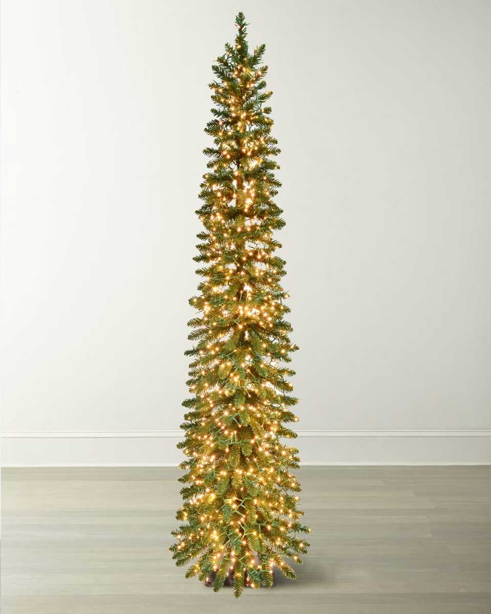 Ready your home this holiday season with this realistic aspen pine Christmas tree featuring 1,320 warm white LED lights. 313 molded PVC tips help create a realistic look Slim profile with a 19" diameter base Approx. 19"Dia. x 72"T Metal/PVC Item weight, 9.5 lbs Imported Boxed weight, approximately 12.6 lbs