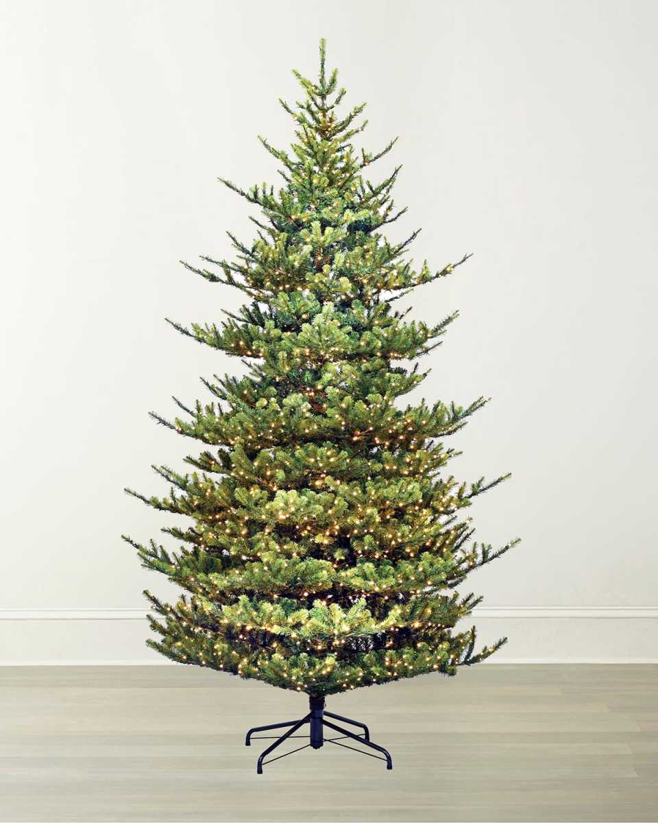 Ready your home this holiday season with this realistic Christmas tree, which will last for years to come. Handcrafted of vinyl, metal, and PVC 3544 branch tips; 3600 warm white lights Plugin cord to turn on the lights Overall, approx. 80"Dia. x 144"T Assembly required; includes hardware Item Weight (Lbs.): 136.4 Wipe clean Imported Boxed weight, approximately 167.2 lbs