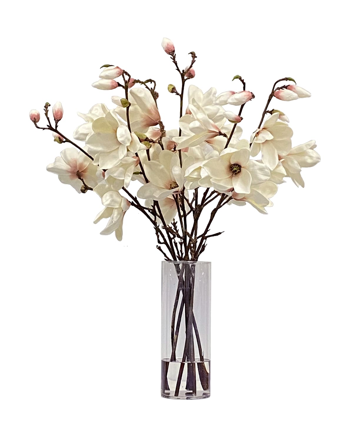 Handcrafted faux floral arrangement in glass vase. Made of polyester and acrylic. Approx. 26"L x 24"W x 34"T. For indoor use only. Made in the USA of imported materials.
