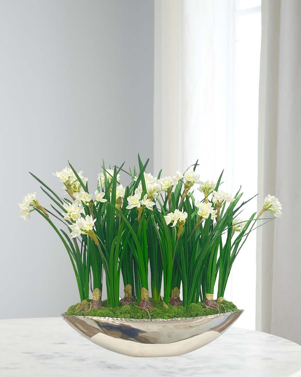 Narcissus Faux Plant in Aluminum Vase