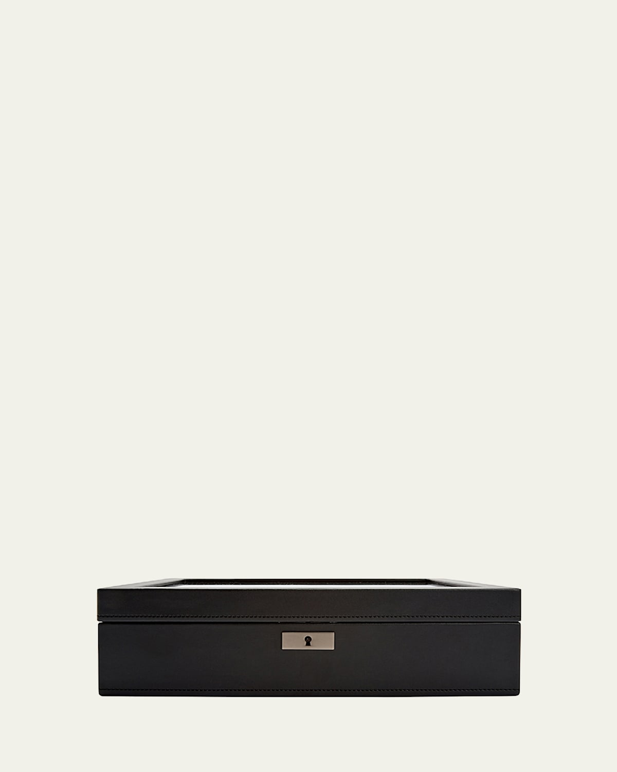 Keep your timepieces safe and secure in style with the Axis 10piece Watch Box. Handcrafted of vegan leather (polyurethane) and polyester Powdercoated and copperplated lasercut perforated steel melded with clean, sleek lines. 10 suspended watch cushions Lock and key security Smartwatch USB port Approx. 12.88"L x 9"W x 3.75"T Item Weight (Lbs.): 5.5 Wipe clean 2year limited manufacturer's warranty Imported