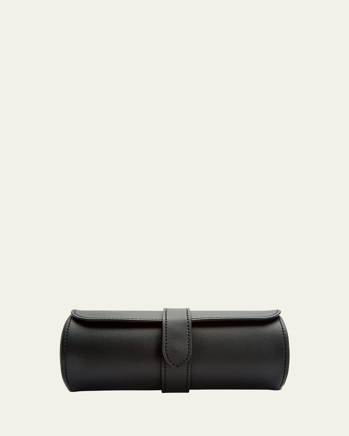 Triple watch roll is crafted of powdercoated, copperplated steel and recycled polyurethane with black microfiber lining Features a secret jewelry capsule (patent pending) inside of the watch roll; three compartments for safekeeping Includes space for three watches with two watch guards Snap closure Approx. 8"L x 3.3"W Item Weight (Lbs.): 1.0 Wipe clean Imported