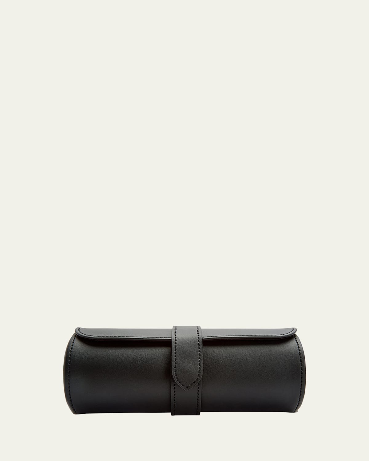 Triple watch roll is crafted of powdercoated, copperplated steel and recycled polyurethane with black microfiber lining Features a secret jewelry capsule (patent pending) inside of the watch roll; three compartments for safekeeping Includes space for three watches with two watch guards Snap closure Approx. 8"L x 3.3"W Item Weight (Lbs.): 1.0 Wipe clean Imported