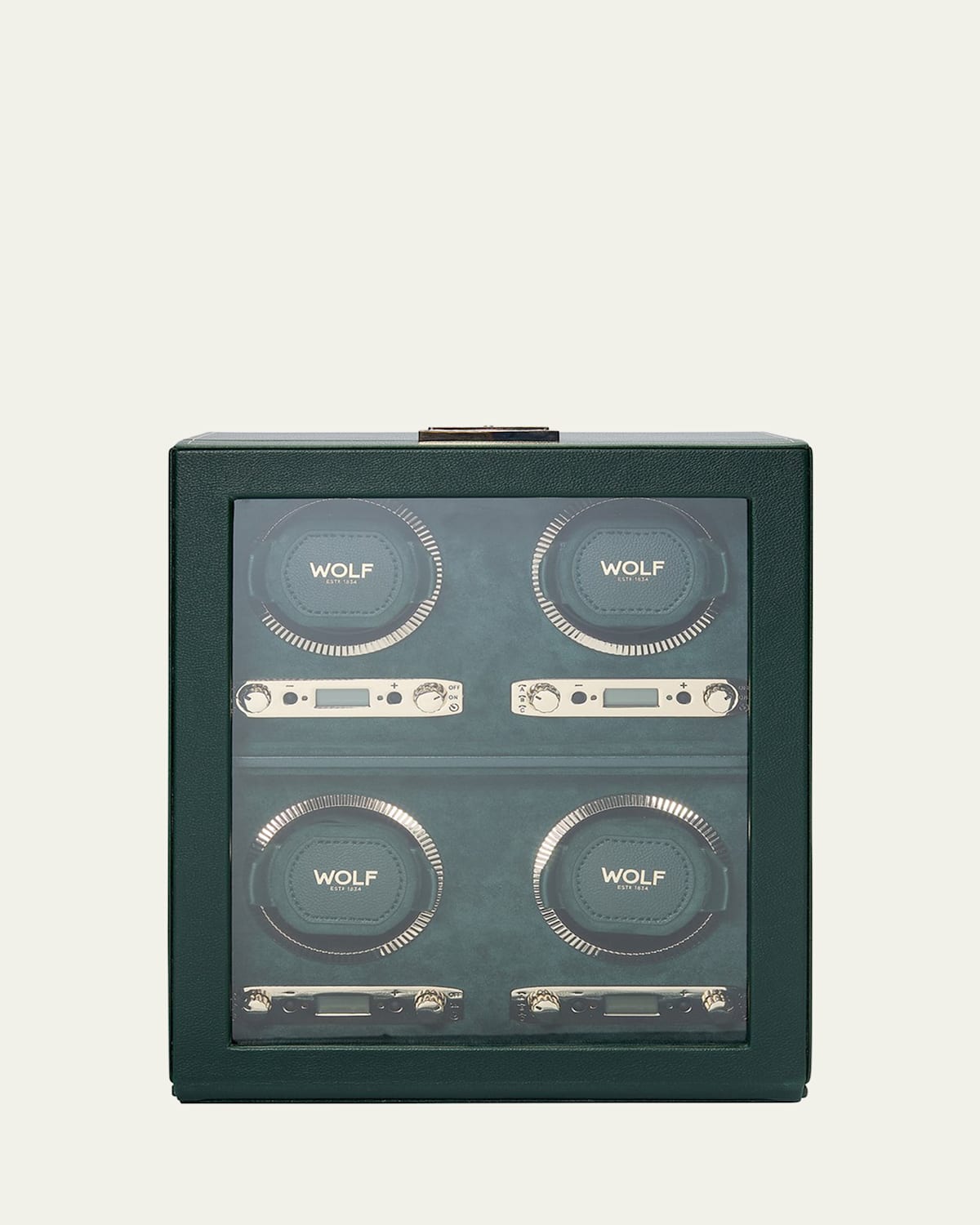 Patented Innovation Every WOLF winder counts the precise number of rotations. All other winders estimate the number of rotations. Handcrafted of pebblegrained vegan leather with metallic foil and suede British Racing Collection; a tribute to the illegal motor racing that took place in Ireland in the early 1900s Locks timepiece into drum for secure fit Approx. 10.75"L x 6.5"W x 13"H Item Weight (Lbs.): 9.2 Imported