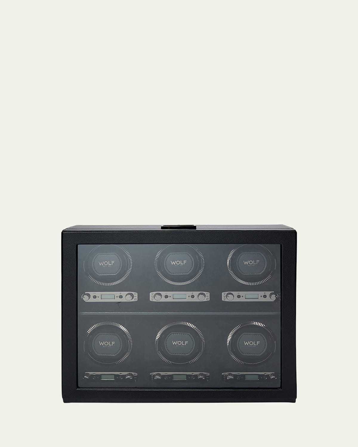 Patented innovation: Every WOLF winder counts the precise number of rotations. All other winders estimate the number of rotations Lockin dynamic cuff: Patented lockin dynamic cuff ‘locks' your timepiece into the rotator drum for a secure fit. Lowdensity foam to accommodate all wrist sizes without putting pressure on your bracelet. Rotation options: 10second start delay. Can be set between 300 and 1,200 TPD (turns per day). Double the amount of TPD by selecting a bidirectional setting. Fluted bezel, lock and key security, Made with vegan leather Approx. 15.75"L x 6.5"W x 13.25"H Imported