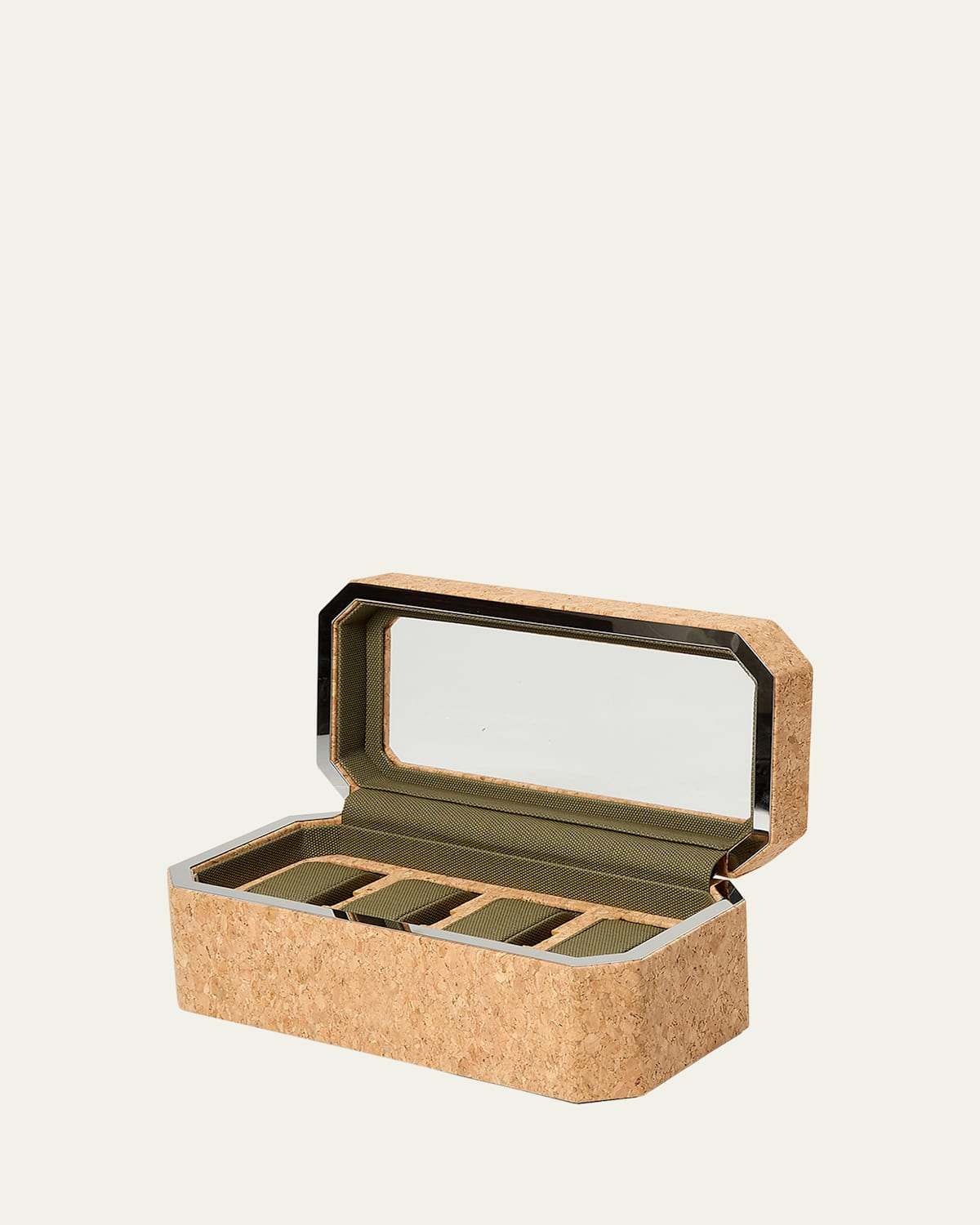 Inspired by the original box for a very special watch Cortiça is handmade from sustainably grown Portuguese cork. The fourpiece watch box has a unique hexagonal shape with metal detailing to perfectly complement any watch collection. Made of cork and faux leather (polyurethane) Item Weight (Lbs.): 3.0 Imported