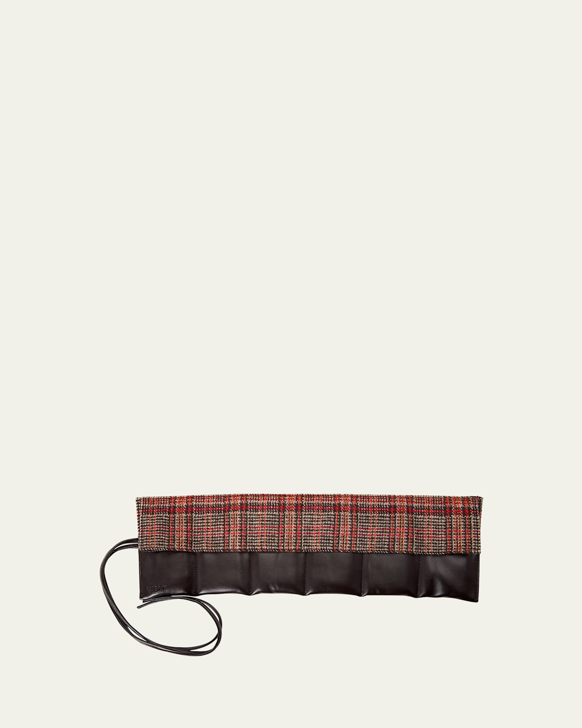 Stores six watches Crafted of faux leather (polyester) and polyester tweed Approx. 7.8"L x 16.8"W Item Weight (Lbs.): 0.7 Wipe clean Imported