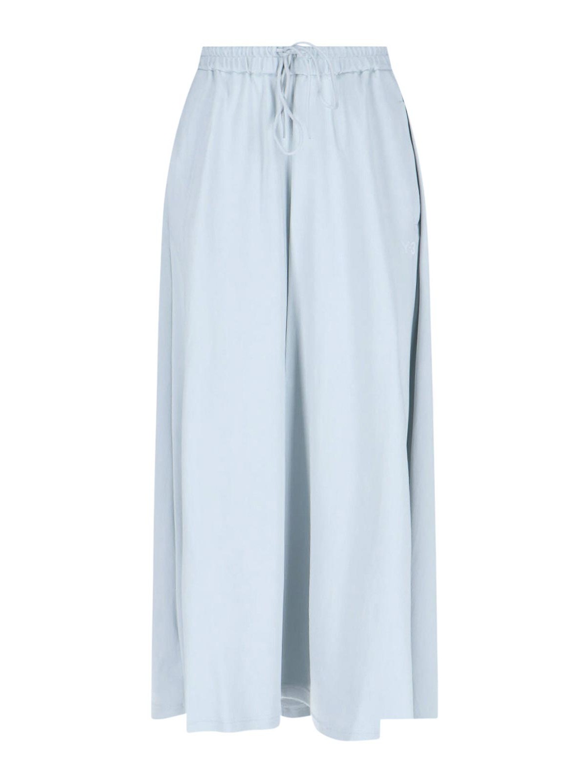 Jupe longue, rayures en Y, grise avec taille haute élastiquée coulisse, deux poches latérales, bandes iconiques en maille latérale.
