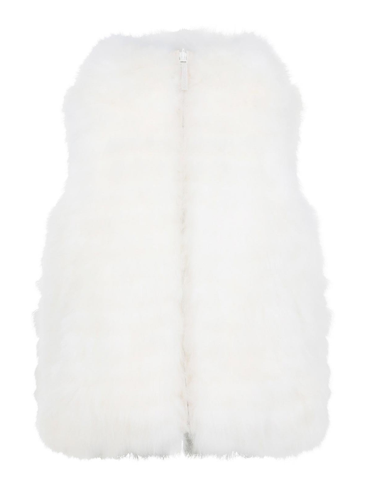 Gilet blanc Yves Salomon, gilet double face, un côté en blanc, l'autre en technologie blanche avec motif matelassé, col pointu, poches latérales zippées, ourlet droit