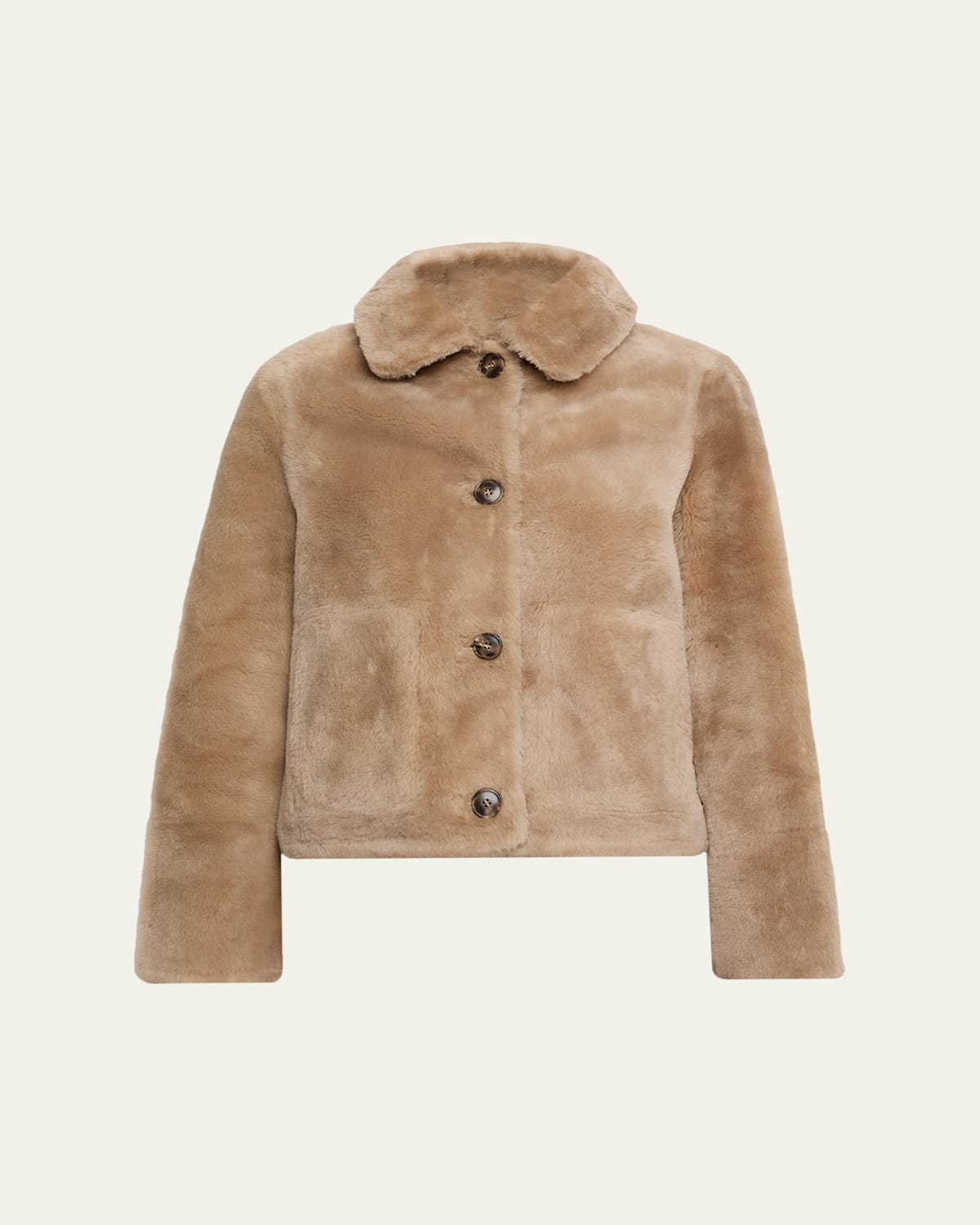 Crafted from dyed lamb shearling (Spain), this Yves Salomon jacket features a singlebreasted front that exudes effortless elegance. Point collar Long sleeves Slip pockets Classic fit Hem sits at the hip Buttonfront Shearling Contains real fur Professional cleaning recommended Made in France