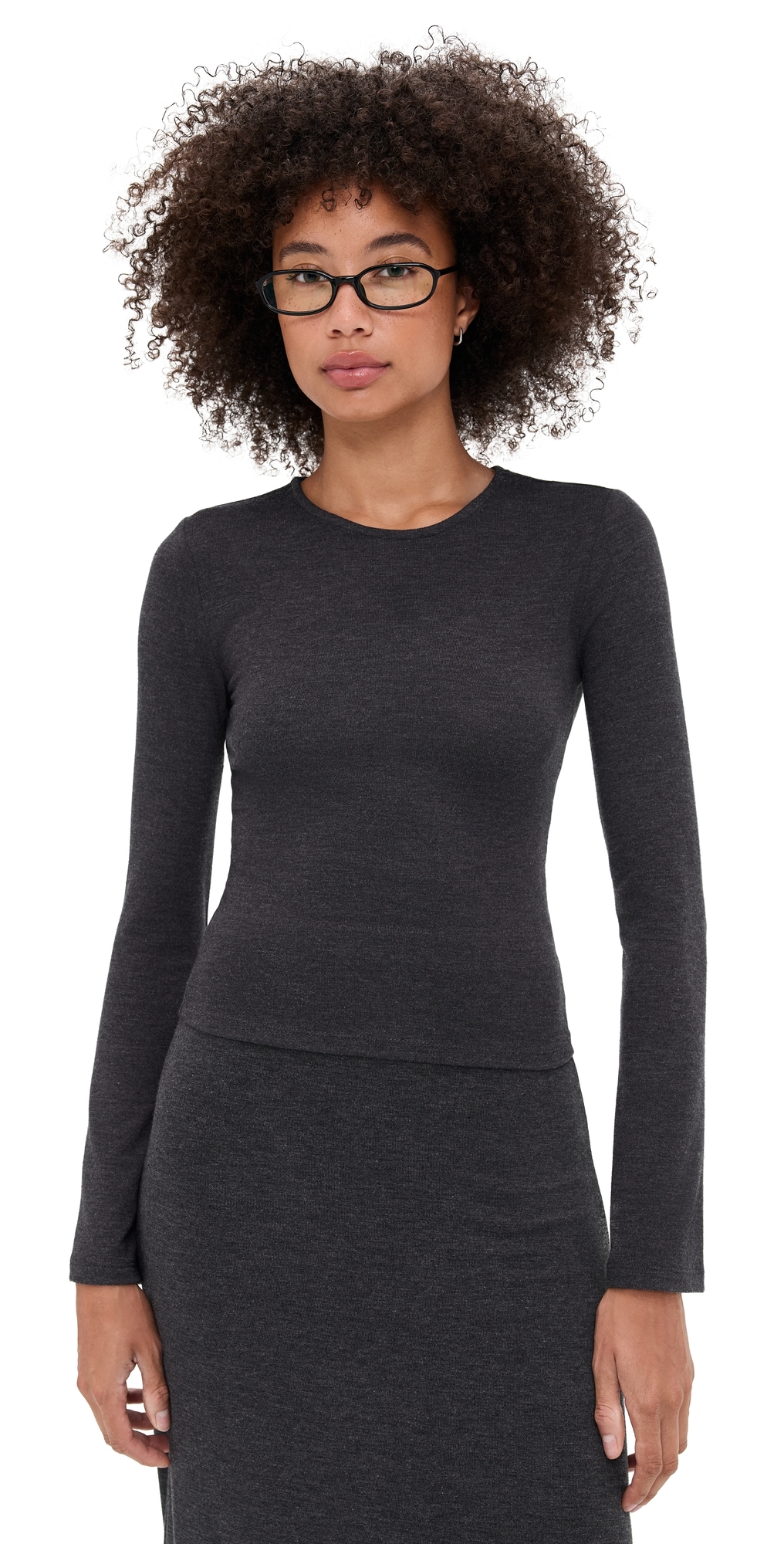 Fabric: Lightweight super-soft jersey. Crew neck. Long sleeves. Shell: 47% polyester/47% rayon/6% spandex. Wash cold. Imported, Brazil. Measurements: Measurements from size S Length: 19.75in / 50.0cm, from shoulder