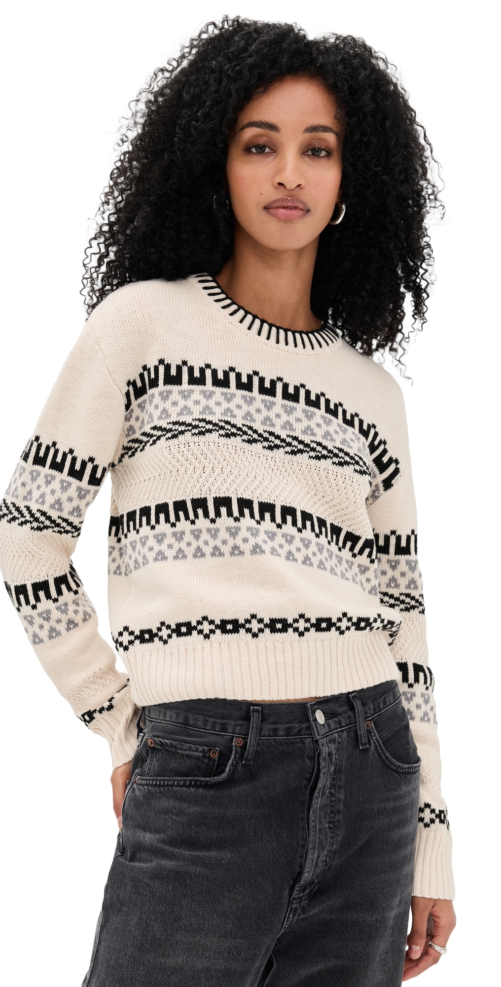 Fabric: Mid-weight stretch knit. Geometric pattern. Ribbed trim. Crew neck. Long sleeves. Shell: 100% cotton. Hand wash. Imported, China. Measurements: Measurements from size XS Length: 19in / 48.0cm, from shoulder