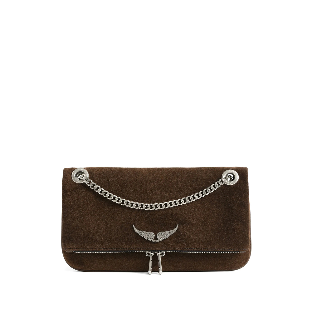 brown chain detail wings embellishment zip fastening top grain leather silver-tone hardware