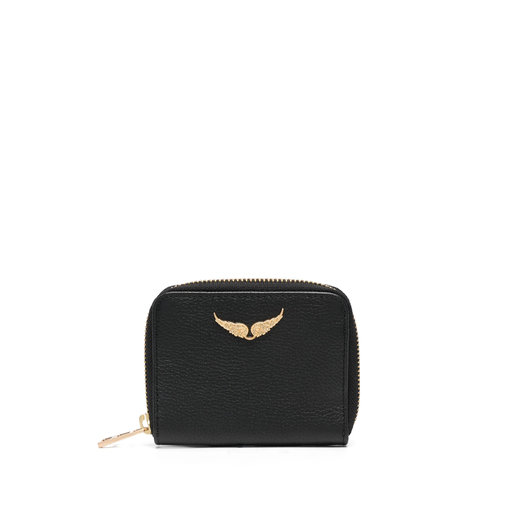 black calf leather logo plaque debossed internal logo gold-tone hardware all-around zip fastening internal card slots main compartment