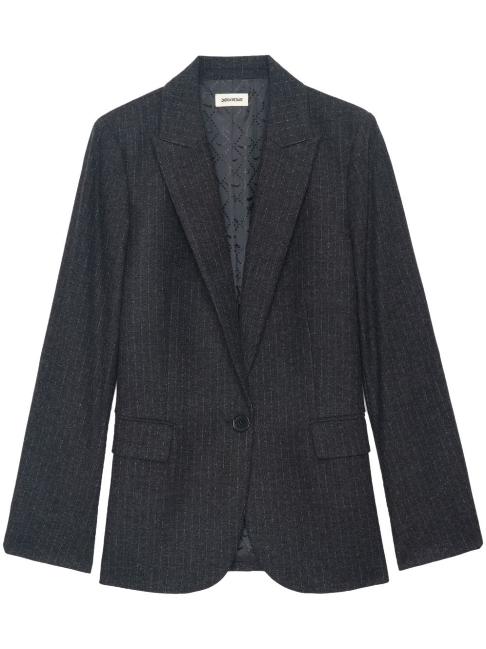 anthracite grey front button fastening two front flap pockets American rear vent split cuffs