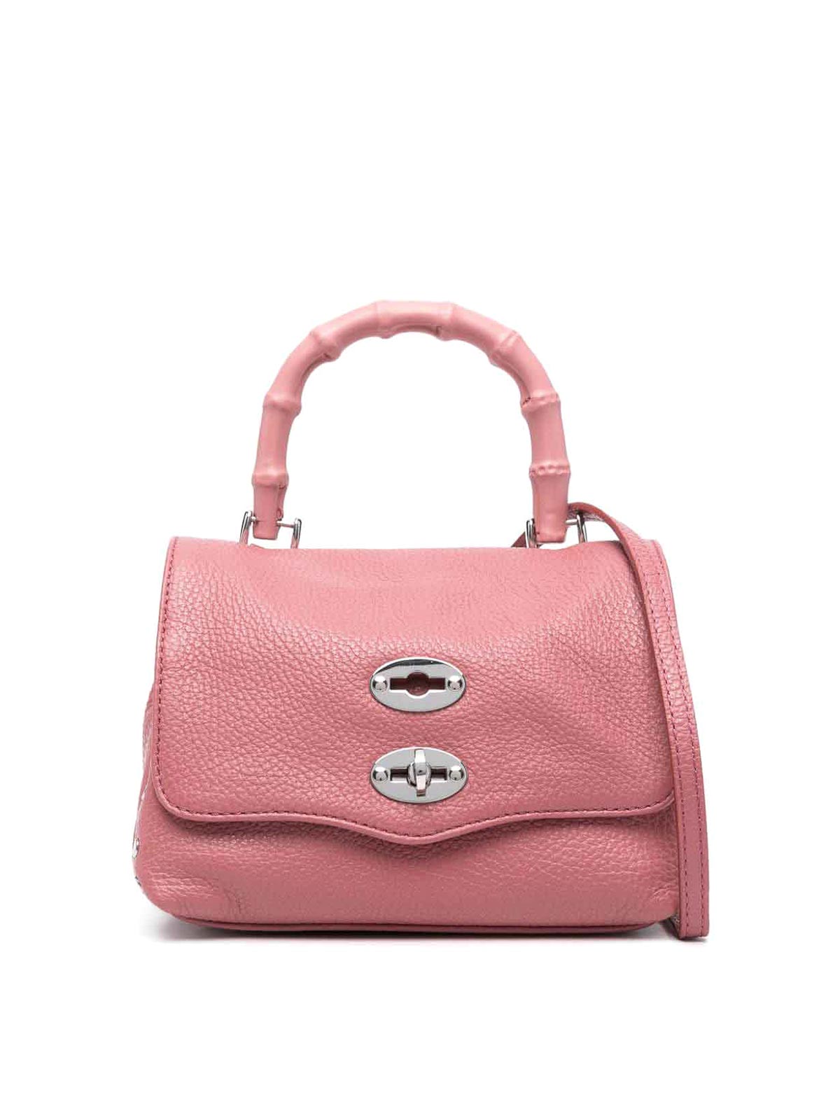 Texture grainée rose foncé torsadée, verrou, dessus en bois unique, bandoulière ajustable et amovible, ornements à clous, compartiment principal, poche plaquée avec logo, écusson à logo, dessus entièrement repliable, pieds supérieurs