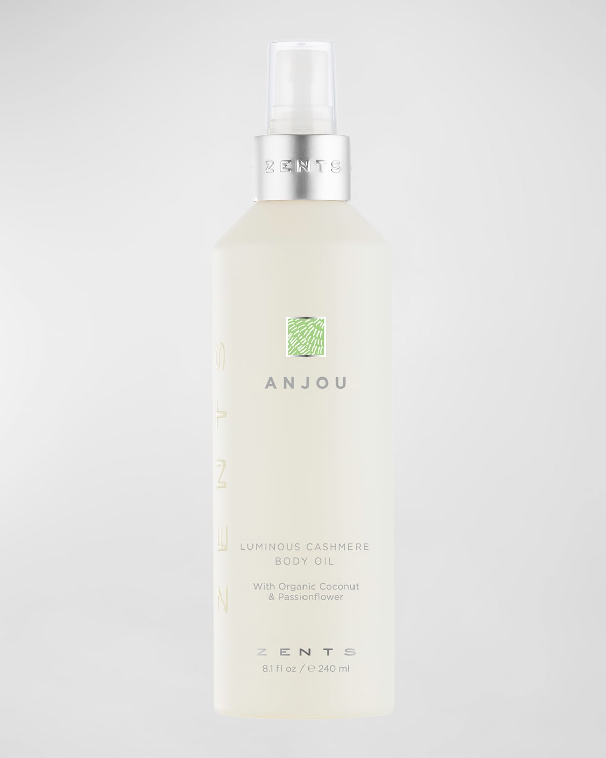 Lustrous ANJOU Body Oil imparts a delicate cashmere feel, an irresistibly sexy sheen, and an elegant scent. Use daily to prevent the signs of aging and restore skin's healthy glow. Antioxidantenriched safflower and Vitamin E provide a double dose of agedefying benefits, for soft, youthfullooking skin. Apply Body Oil after sun exposure to soothe and soften. How to Use Spray in your hands and apply evenly to the body. Use daily for extra dry skin, mature skin, or in dry climates. Ideal for all skin types. The Aroma Inspired by a French countryside picnic, ANJOU captures the faint aroma of ripened, sunsoaked pears floating in the breeze, mingling with a delicate bouquet of jasmine and geranium. Warm, creamy notes of vanilla bean balance green and golden aromas of basil and wild mimosa. Key Ingredients COCONUT OIL / Deeply hydrating antioxidantrich coconut provides smooth, moisturized skin and shiny, healthy hair. VITAMIN E - Potent antioxidant vitamin, offers a host of benefits when used every day as well as directly after sun exposure; protects skin from cancercausing free radicals and sun damage, promotes skin cell regeneration, helps wrinkle reduction SAFFLOWER OIL - Moisturizer rich in skinsoothing linoleic acid and Vitamin E SUNFLOWER OIL - Moisturizer rich in emollient linoleic and oleic essential fatty acids Works Well With: Anjou Concreta, Unzented Body Polish, Anjou Eau de Toilette You May Also Need: Anjou Lotion Why Bespoke? The Bespoke Collection reimagines the concept of bespoke. ZENTS is known for creating bespoke aromas for celebrities and royalty. We believe you deserve the same personalized care, and that it shouldn't be limited to fragrance. The Bespoke Collection allows you to have fun mixing and matching a full array of clean, resultdriven, age defying body products in ten aromas. No private consultation needed. Vegan, Gluten Free, Cruelty Free. Formulated without Parabens, Phthalates, Propylene Glycol, Petroleum, Dyes, Sulfates, Palm Oil Made in the