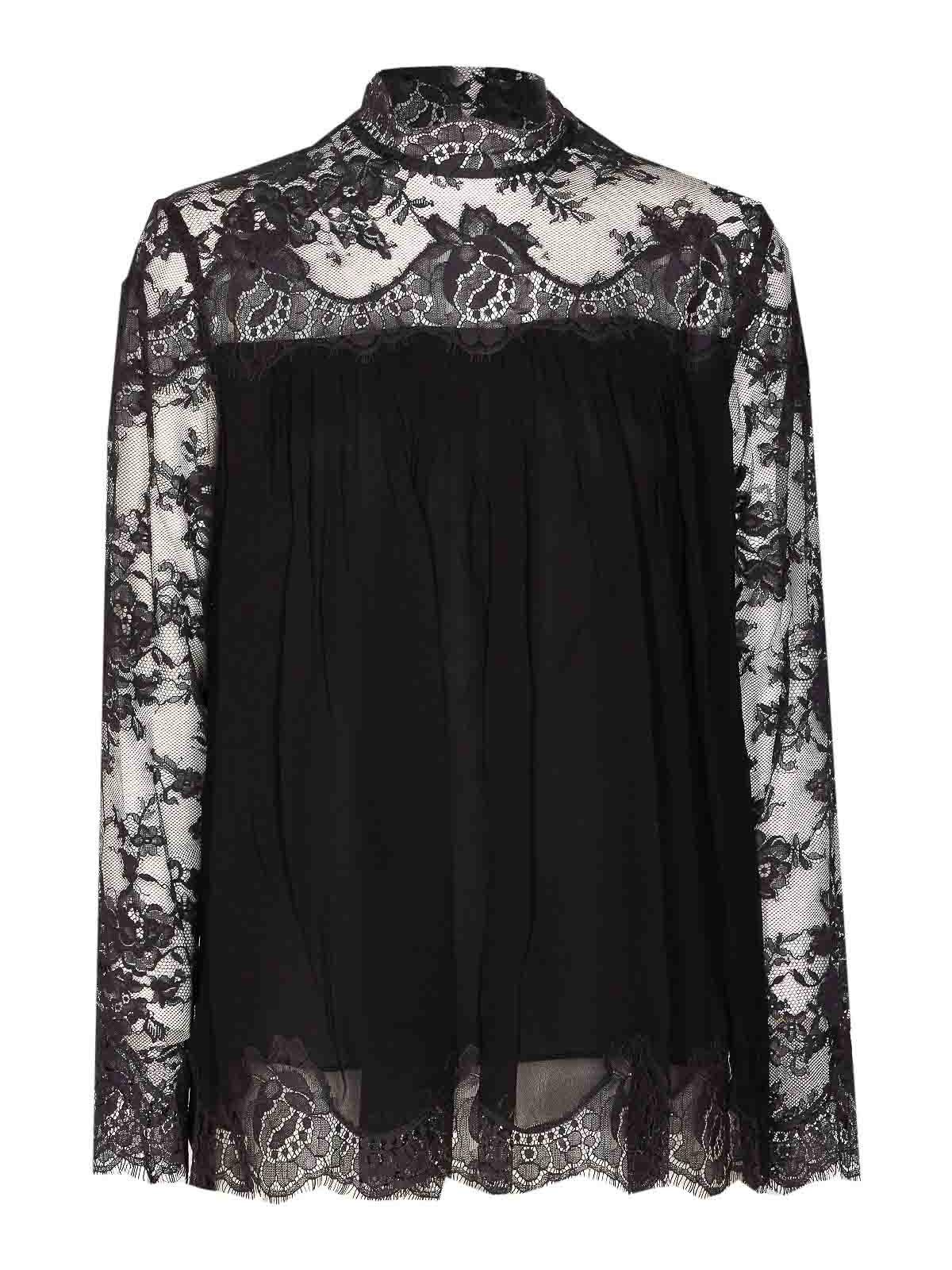 Blouse hypnotique noire Zimmermann à empiècement en dentelle, bordure en dentelle, fermeture éclair au dos, plissé Nom de la couleur du créateur: noir