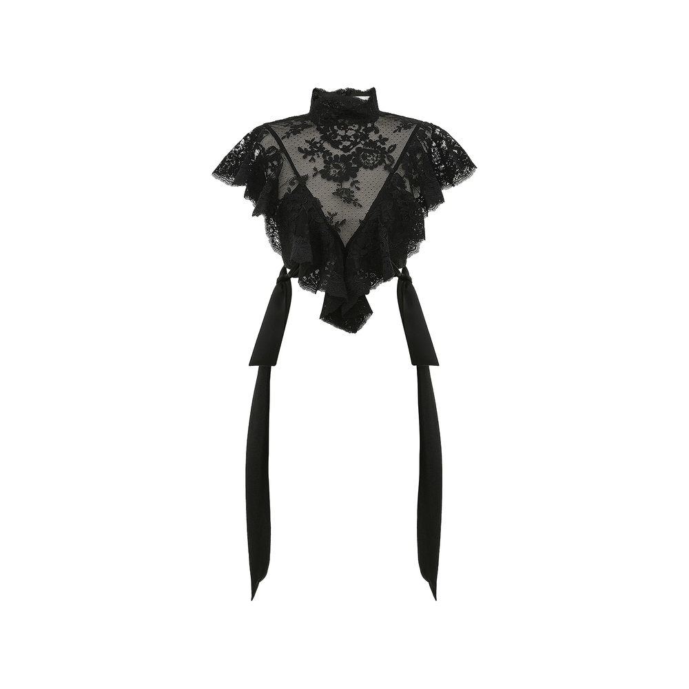 black lace ruffled details tie fastening