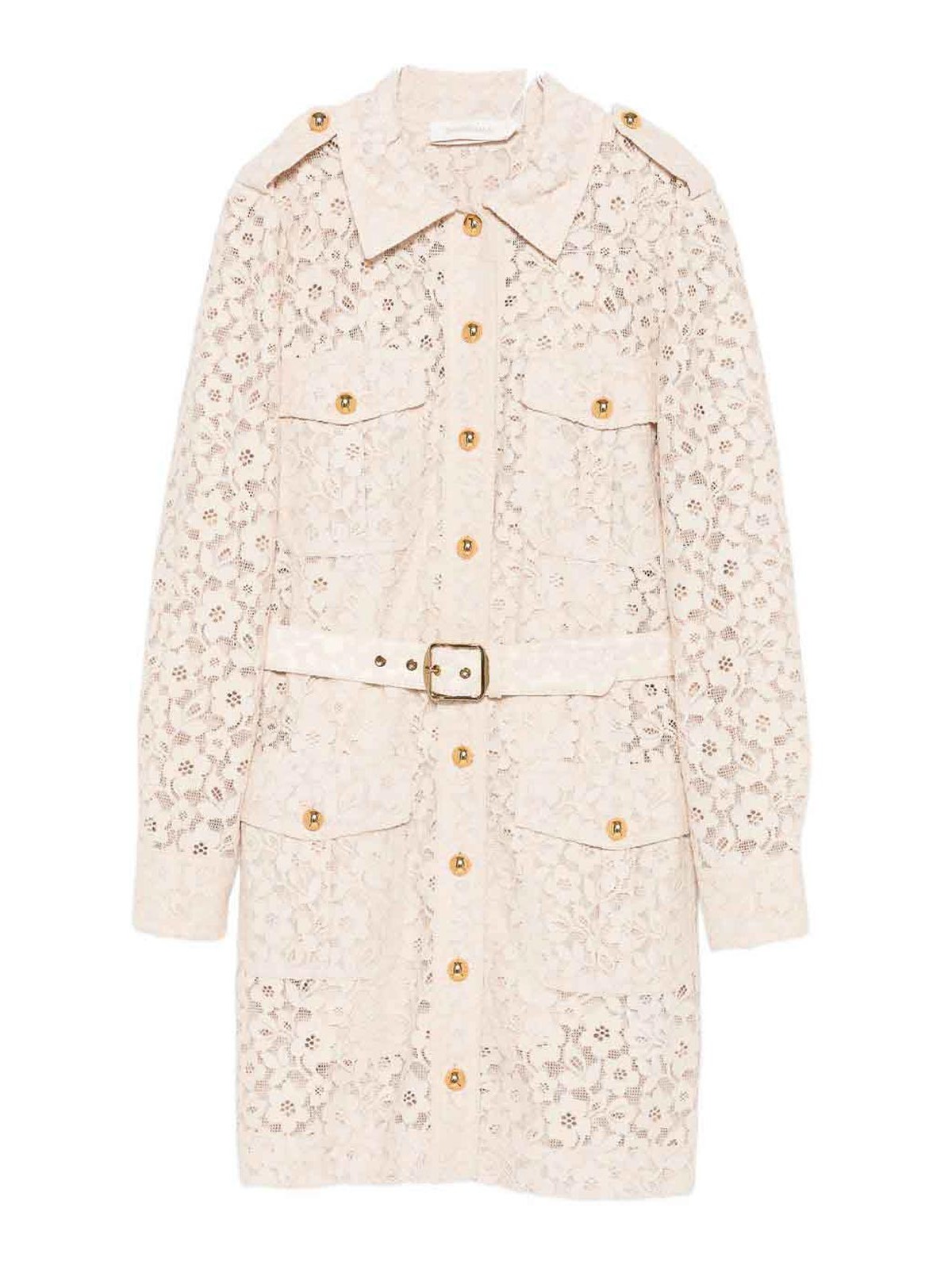 Mini-robe courte à fleurs de couleur crème de Zimmermann avec ceinture à la taille
