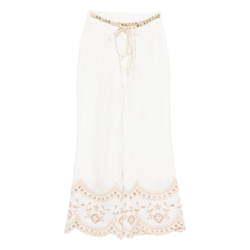 ivory beaded detail embroidered detail tie belt scalloped hem
